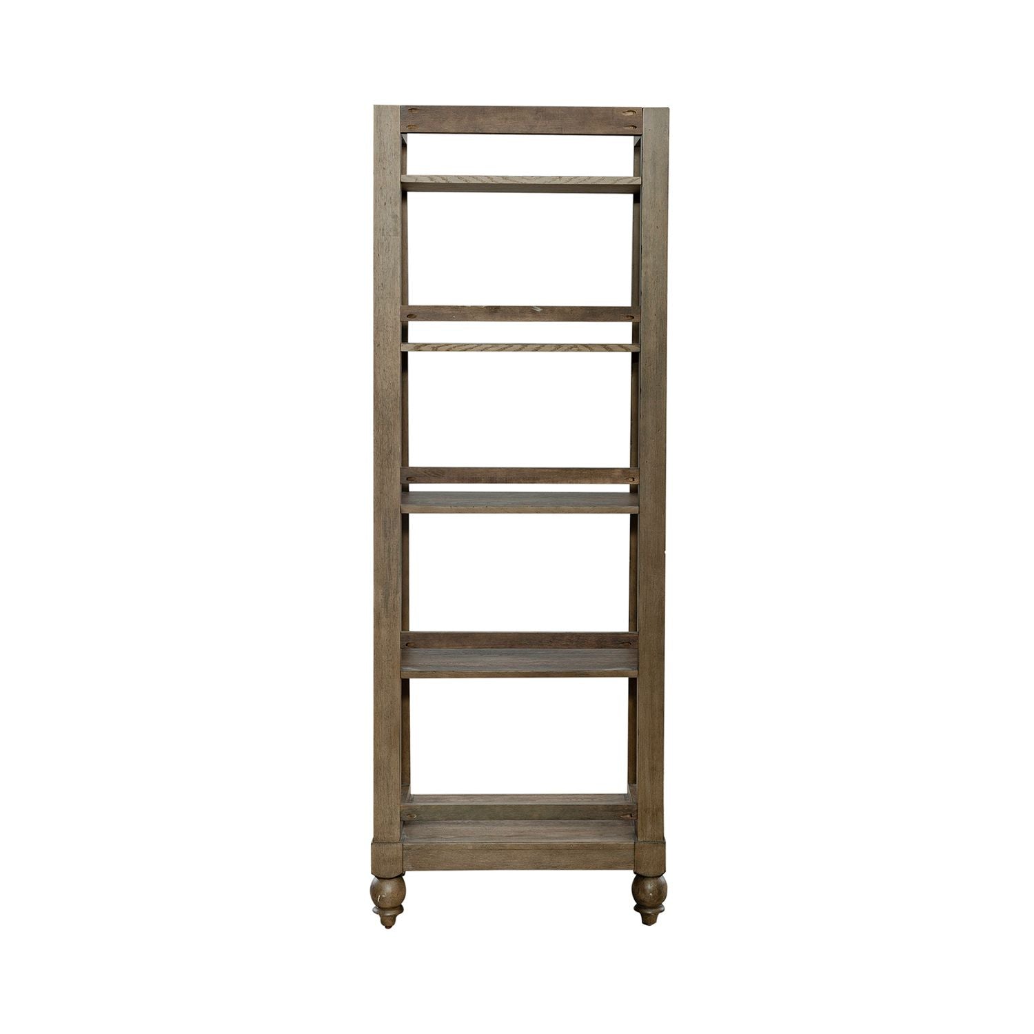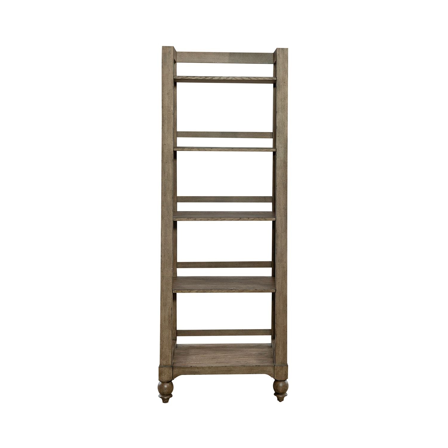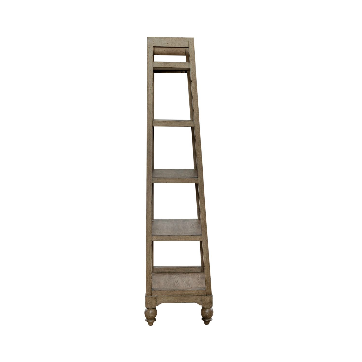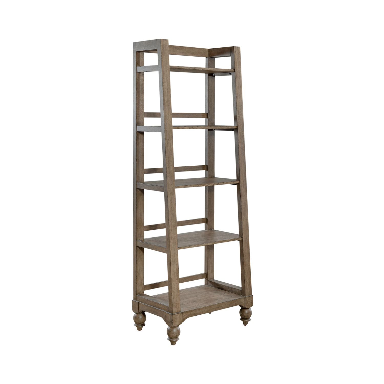 Be distinctively different with the Americana Farmhouse leaning pier bookcase. Crafted with excellence using poplar solids and white oak veneers, this piece features a Wire-Brushed Dusty Taupe finish. There are five graduated shelves implementing the leaning design anchored by turned bun feet. Show off your craftsman's flair with the Americana Farmhouse leaning pier bookcase.