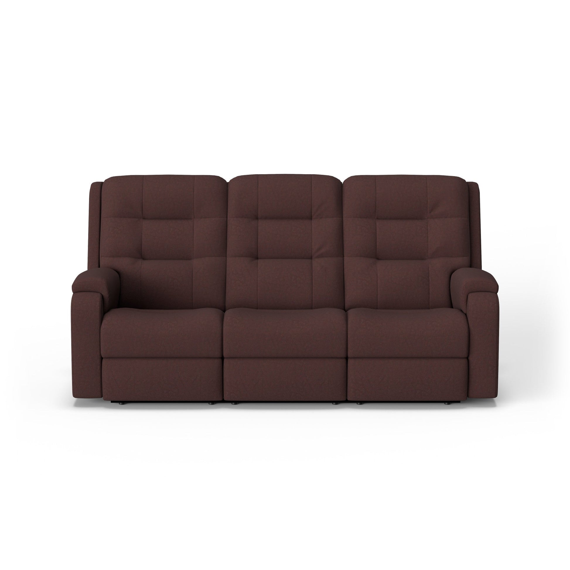 Kick back and relax in a luxury leather reclining sofa that looks and feels good with the Arlo Power Reclining Sofa with Power Headrests and Lumbar. Using power controls in both arms, you can independently adjust headrests, recline and lumbar support, finding the perfect position for each person sitting on the sofa. USB charging ports built in the power controls make it easy to keep devices powered up. Enjoy the comfort of ergonomic design features including pull-tufted, triple-divide back cushions that cradle your head, neck and lower back and give the sofa a distinctive look. Contoured seats with chaise pads take pressure off your legs, while rounded pad-over arms cushion your forearms. An ideal mix of firmness and flexibility comes from our DualFlex Spring System™, which also ensures the sofa will stay comfy for years to come. Make this sofa your own by choosing from more than 50 leather or leather match options, offering a high-end look that will last for years to come.