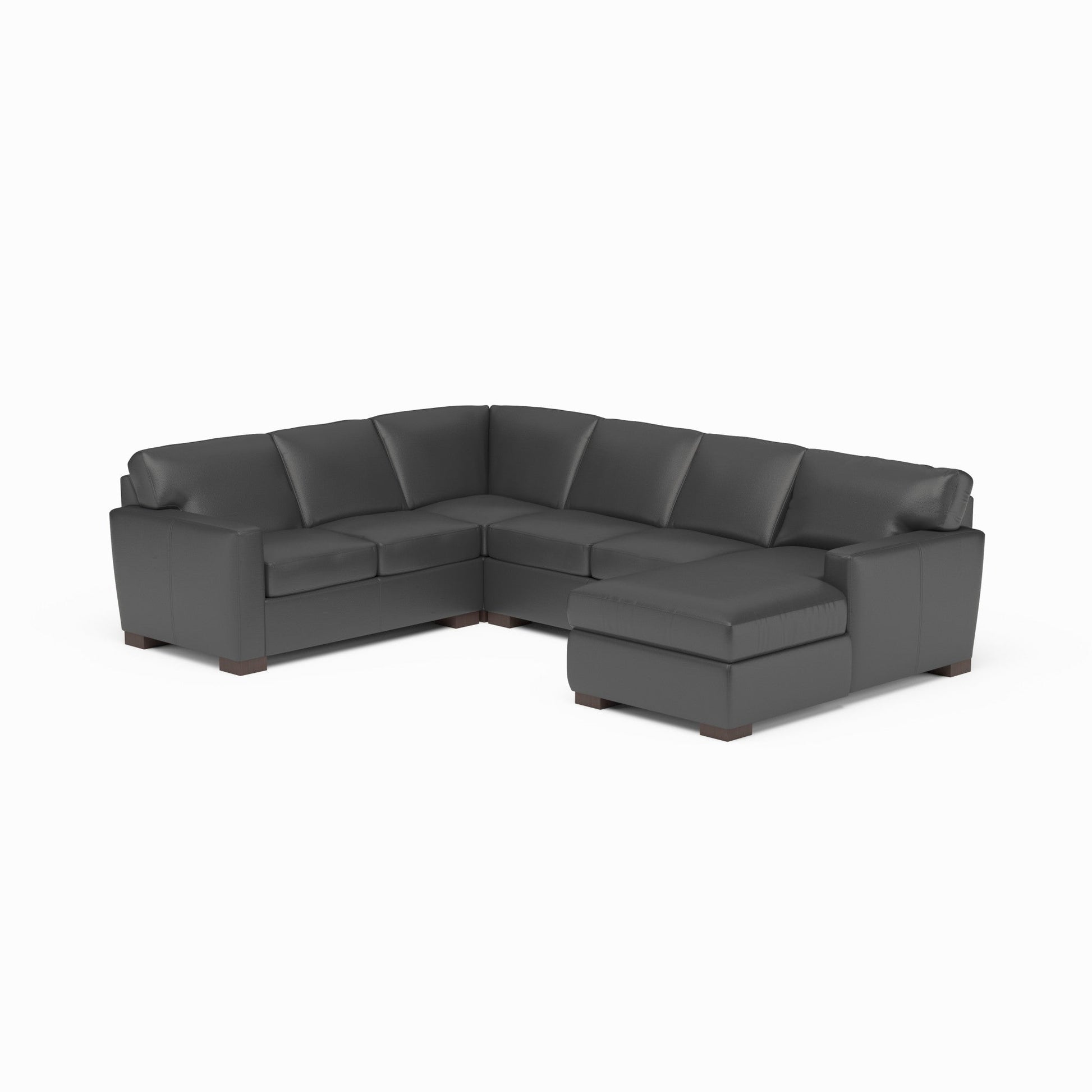 Plush, deep seating and a wealth of cushioning Bryant offers modern, clean lines that are contrasted by its softly padded arms and boxed seat cushions. The arms and seat cushions are detailed with single-needle top stitching, while the bold block legs add a solid finish to this design. Multiple seating options make the Bryant sectional ideal for relaxing with company. Model Number: B3399-SECT Dimensions