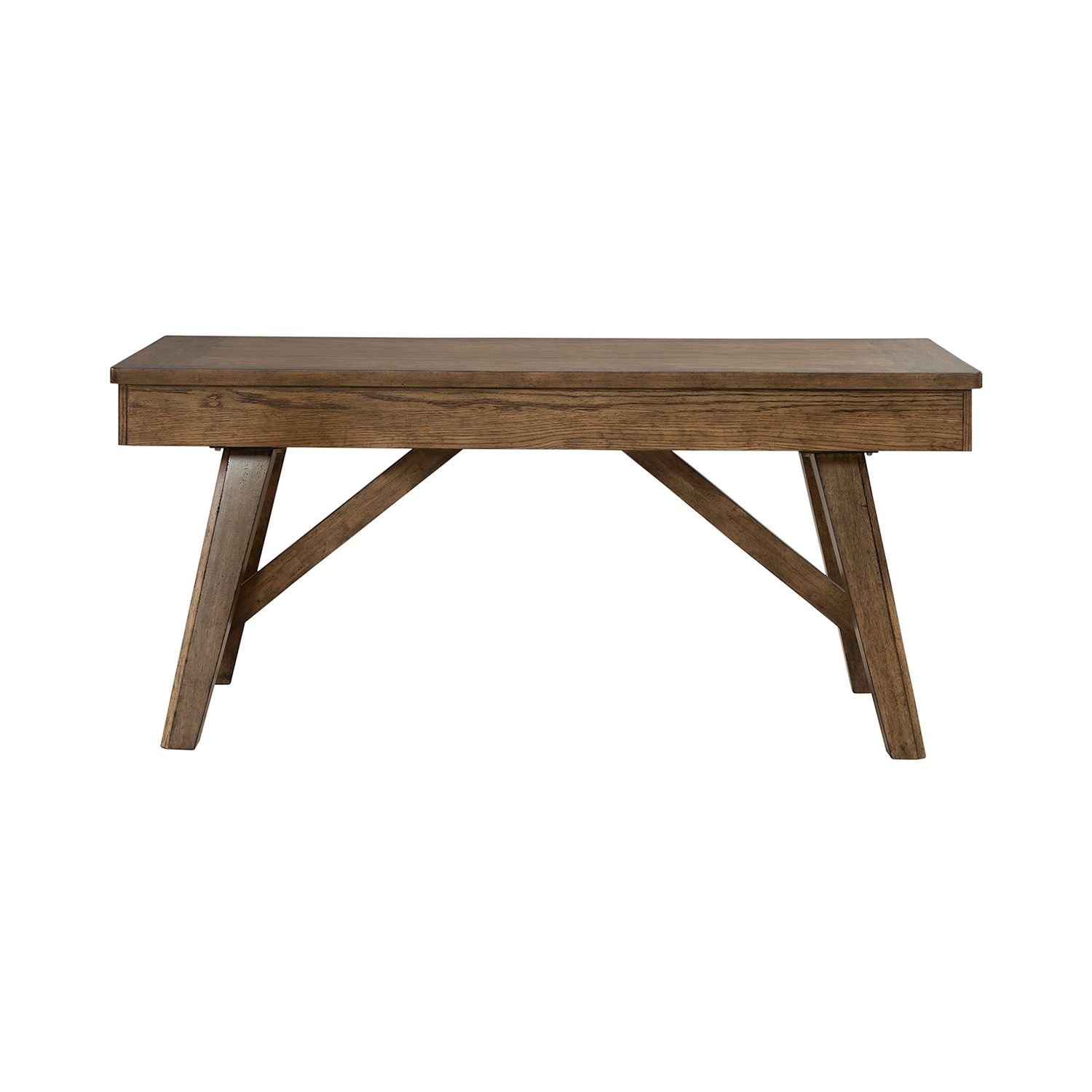 The Carolina Park Writing Desk brings timeless style and everyday function to your home office or study space. Crafted of Rubberwood solids with Split Heart White Oak veneers in a warm Amber Brown finish, this desk features a center drawer with a flip-down keyboard tray and wire management provisions, flanked by two pencil drawers for convenient storage. The desk sits on splayed tapered legs with soft chamfered edges, offering a refined look, while the angled trestle-style base provides added stability and a touch of architectural charm. Perfect for focused work with classic appeal.