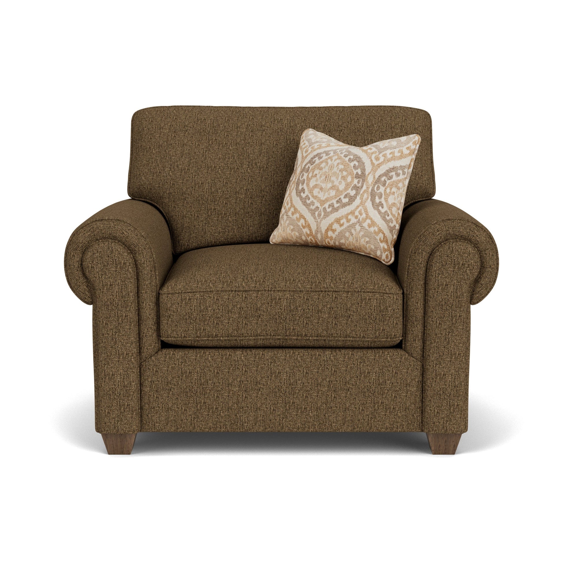 A unique wrap-around padded armrest on Carson’s large-scale rolled arm is highlighted with pleats and welt cording. Optional nailhead trim tightly spaced lines the exposed arm fronts for a fun, visual effect. Relax into Carson’s overstuffed seat and back cushions after a long day and feel the stress melt away.