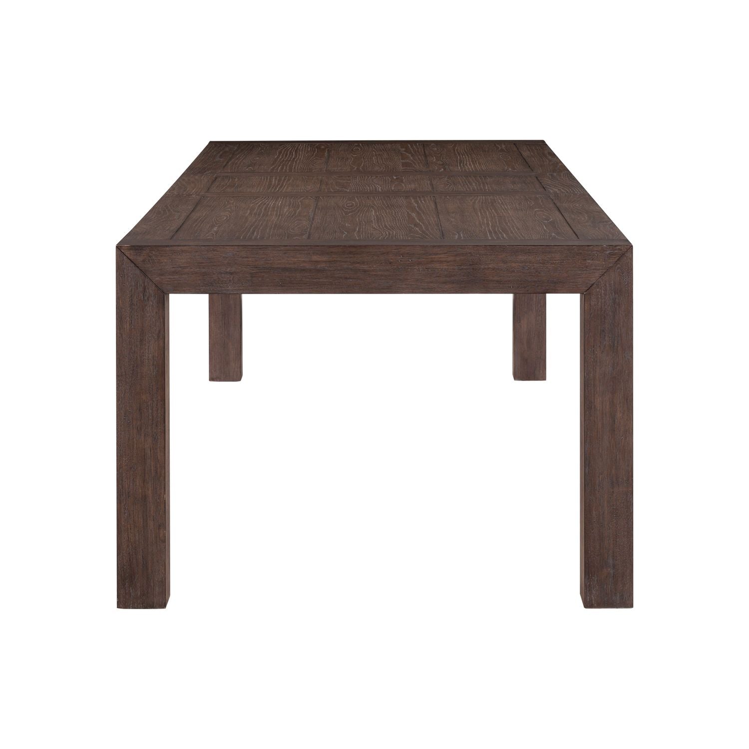 Bring bold style and everyday function to your dining space with the Cascade Falls Rectangular Leg Table, crafted of Rubberwood solids and Split Heart White Oak veneers in a rich Satin Espresso finish. This striking table features a 20-inch self-storing leaf with a smooth wood guide and metal gear track system, making it easy to expand for gatherings. The planked-effect tabletop is detailed with score lines and bread board veneer ends for added character. Over scaled block legs and a wide apron ground the design in clean, contemporary style, perfect for both casual meals and elegant entertaining.