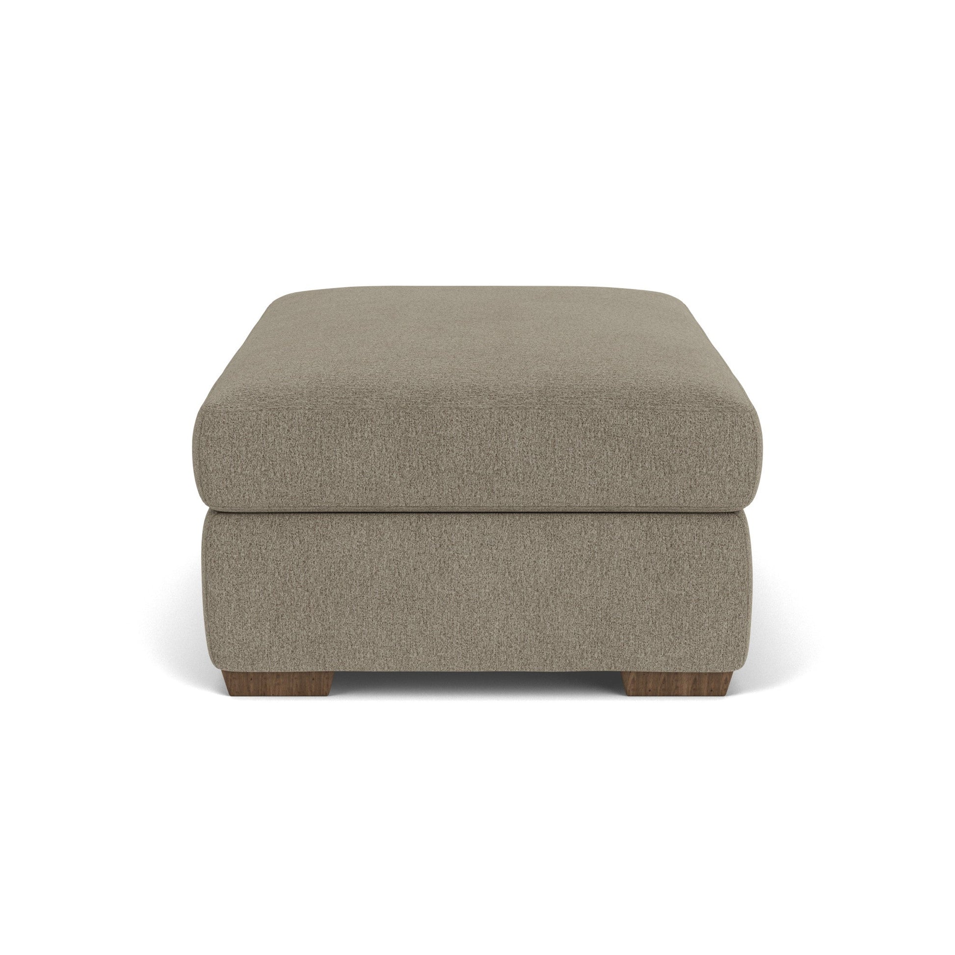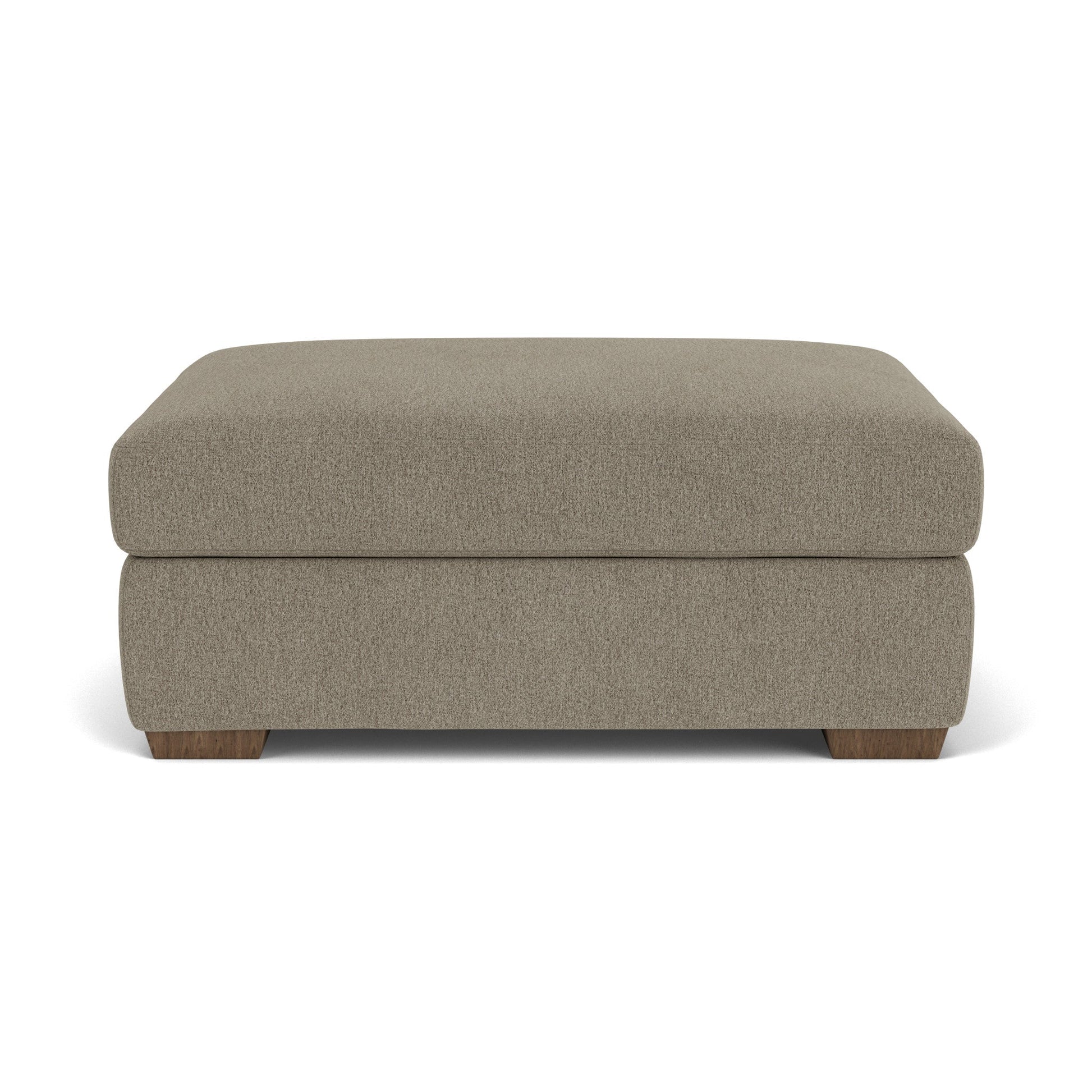 Stylish Simplicity Clean lines, block legs and an ultra-comfy cushion will make you want to lounge a little longer on the Collins ottoman. Offering a timeless, casual look, this ottoman invites you to lean back, kick up your feet and get comfortable. Pair it with the Collins chair for a perfectly coordinated look or use it as a standalone seating element. Offered in your choice of upholstery and finishes, this ottoman can be customized to suit your personal style. Transitional style with wide track arms Bold block legs come in your choice of finish Constructed with a durable five-layer wood frame with premium resistance to warping Upholstered in your choice of fabric, including those with performance and sustainability characteristics Handcrafted in North America Model Number: 7107-08 Dimensions 18H x 41W x 29L