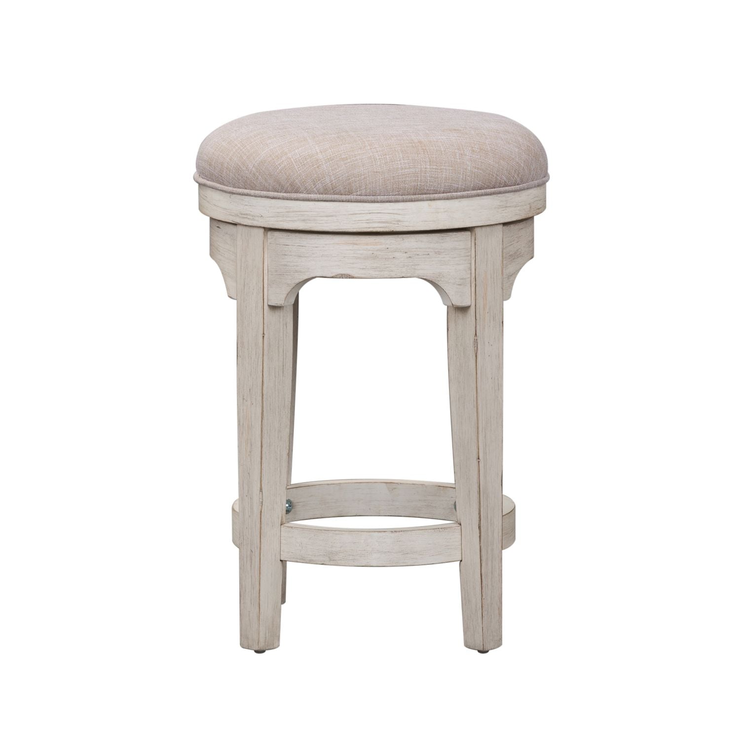 Add a touch of class and style with the Farmhouse Reimagined console swivel stool with upholstered padded seat you could sit comfortably for hours. Feature tapered solid poplar wood legs in a heavily distressed antique white finish.