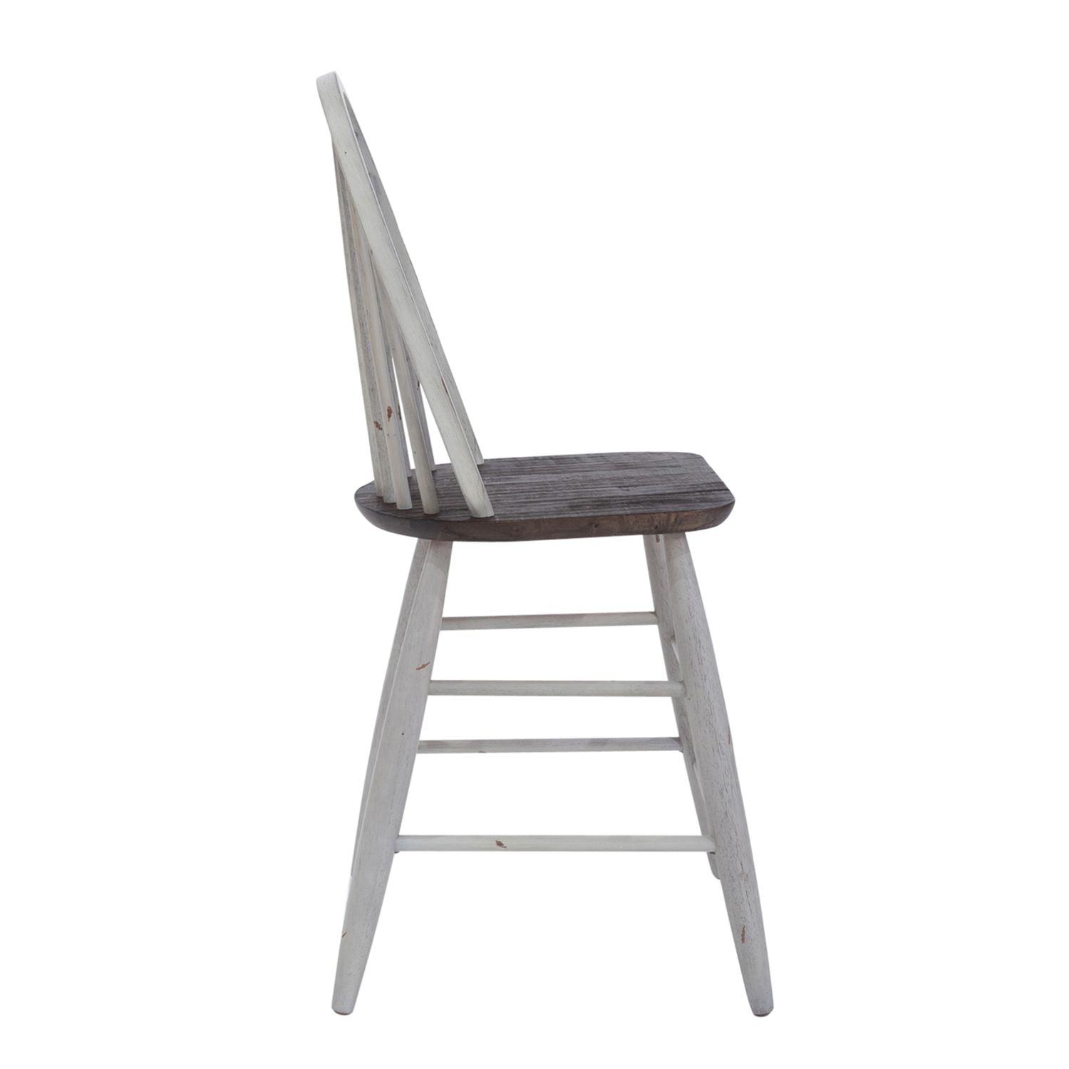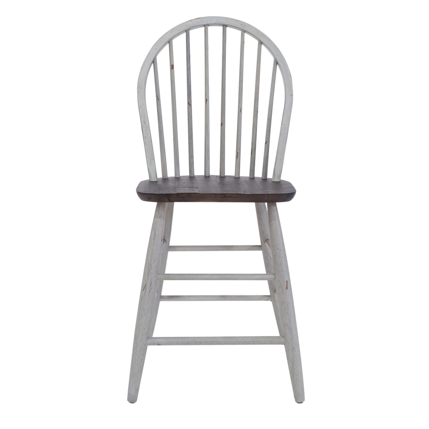 Sit in style and comfort with the Farmhouse Windsor back counter chair. Crafted of rubberwood solids, this piece features a timeless heavy distressing and nylon chair glides to protect your flooring. The two-tone white finish with wood tone seat creates a versatile look that is sure to be the perfect addition to any space.