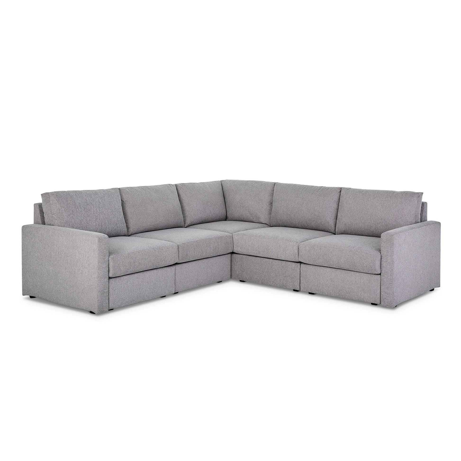 Designed for a lifetime of flexibility, the Flex 5-seat sectional supports the space you have now and can easily expand when your home does. Modular components allow a multitude of configurations so you can create the perfect seating arrangement. Built with Blue Steel Spring technology and sustainable, stain-resistant performance fabric, Flex seating provides deep-seated, blissful comfort and long-lasting livability. And assembly is a breeze with a patented J-bracket “no-tool” method that takes minutes, rather than hours.