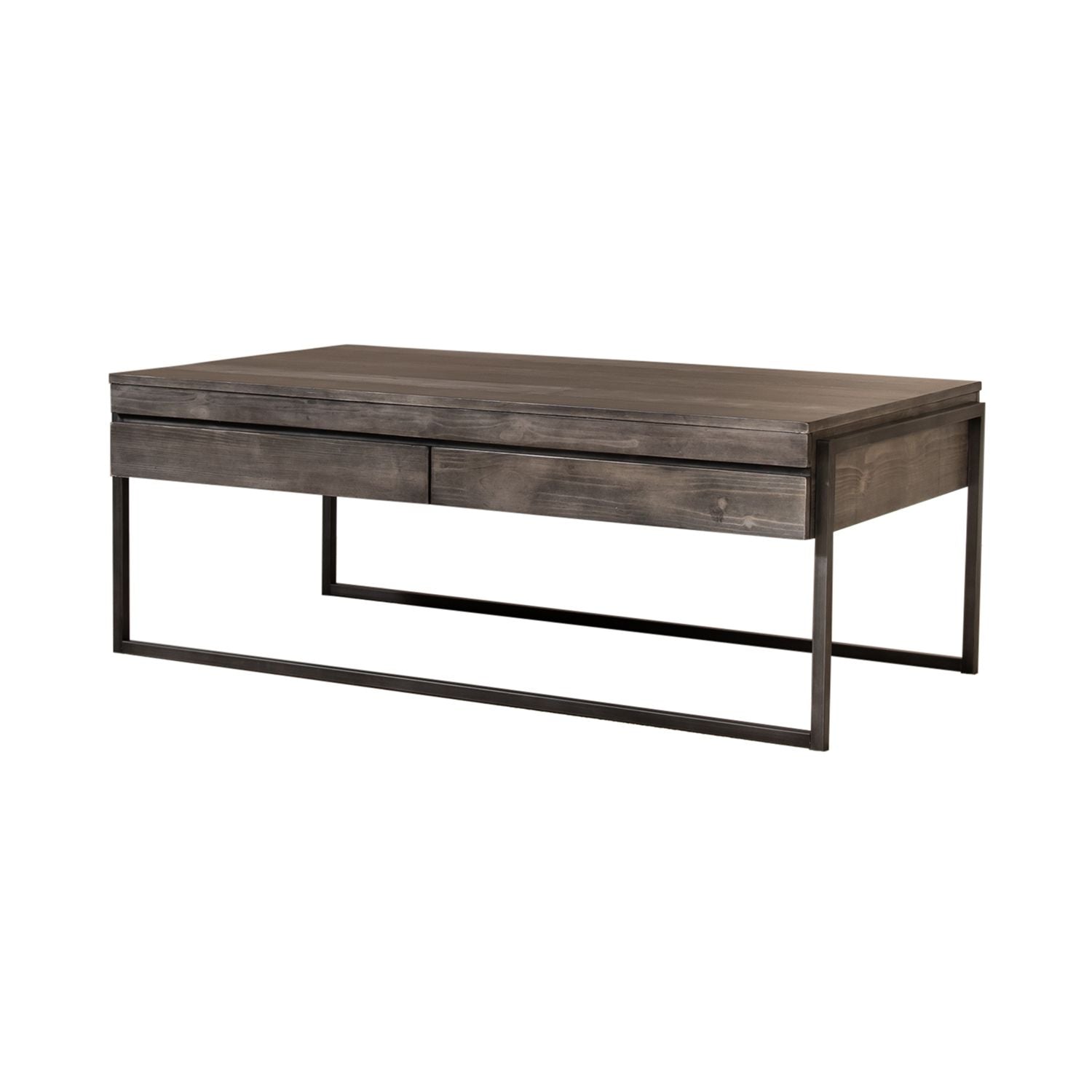Gateway collection is simple yet stylish, will blend easily with all room décor from contemporary to urban. Crafted of pine veneers in a weathered grey finish. Features powder coated metal tubing for durability, cocktail offers two fully stained full extension drawers and end offers one drawer with groove lines on top that create a planked design. Sleek style lines make this set an excellent addition to any home. Kit consists of one cocktail and two end tables.