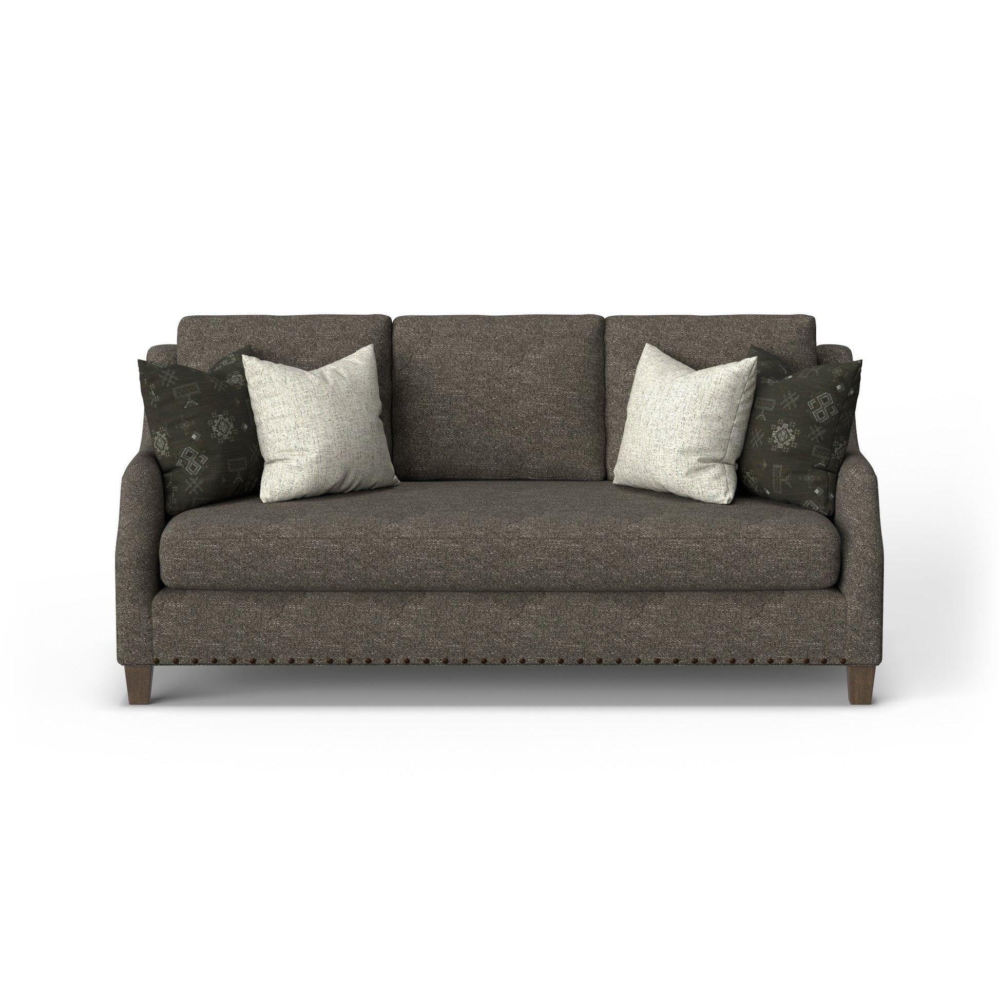 Vintage-Inspired Elegance A true heirloom sofa, Gianna is vintage-inspired elegance to last a lifetime. This bench sofa sports luxurious English arms with a welt trim for added glamour. Vintage style meets modern innovation with removable, high-density cushions, easy to clean and built to last with our patented Blue Steel Spring ™ seat system. Available in high-performance upholstery options to stand up to daily wear, the Gianna is a timeless piece built to last a lifetime. With square tapered legs available in three gorgeous finish options, this sofa is perfect for those looking to make a statement. Elegant English arms with a welt-trim Square-tapered legs, available in three finish options Includes four accent pillows in your choice of fabric to match your personal style Built to last with Flexsteel’s Blue Steel Spring™ seat system providing unmatched support and durability Removable, high-density foam core bench seat cushion, engineered to maintain its shape over time, complete with a layer of recovery foam for everlasting quality and luxurious comfort Loose box back cushions can be rotated and sit on a pillow ledge to prevent them from falling behind the seat cushion Sustainably sourced, kiln-dried wood frame with mortise and tenon joinery for lasting strength Upholstered in the expertly tailored fabric of your choice, including high-performance and sustainable options Handcrafted in North America Model Number: 7824-311 Dimensions 40H x 86W x 40L