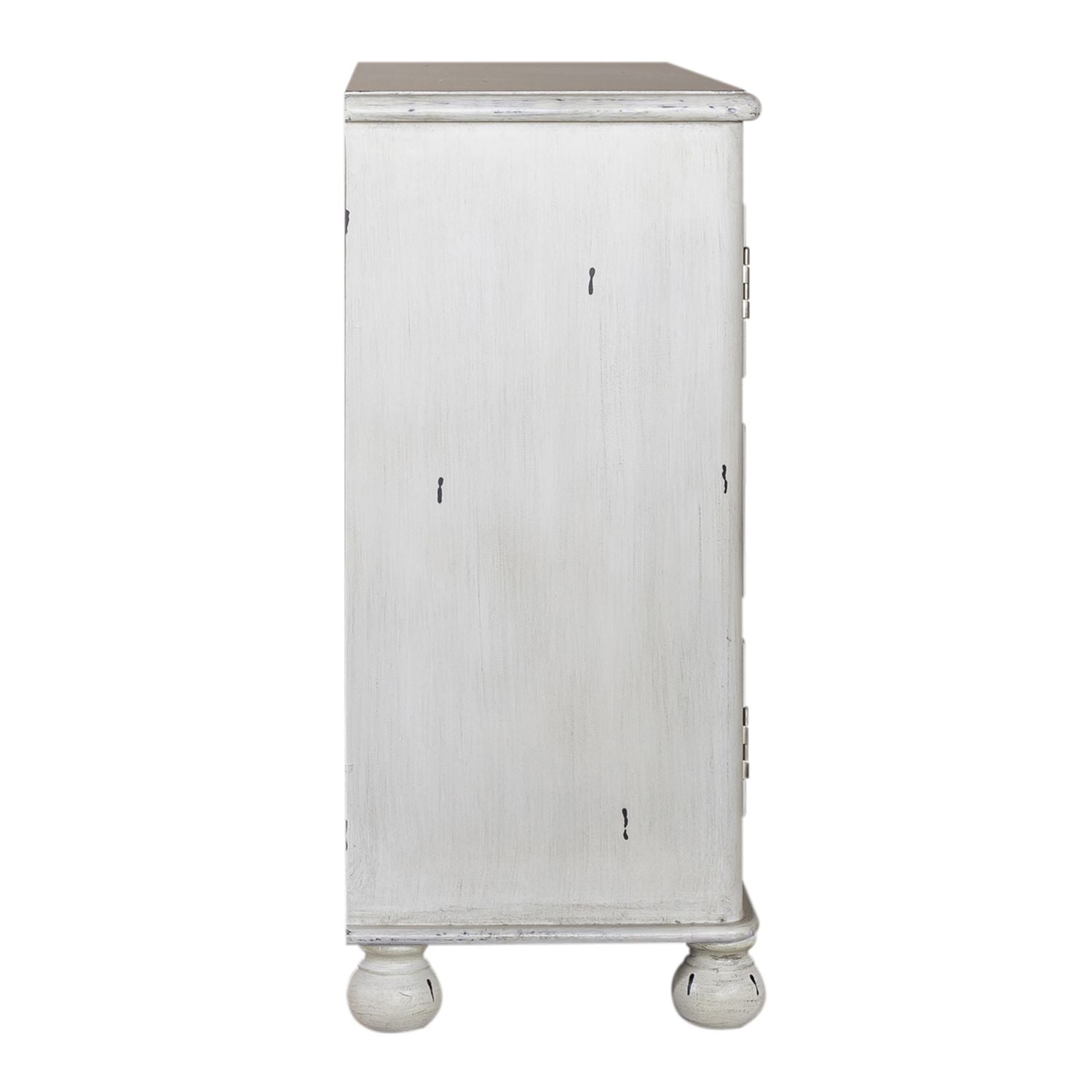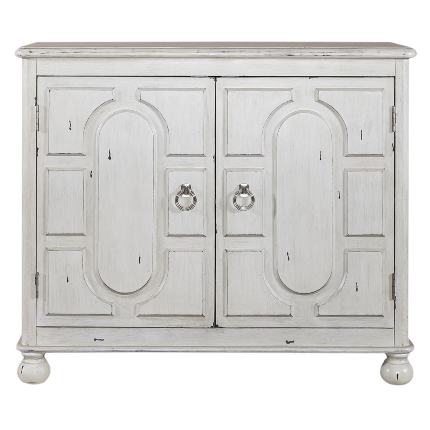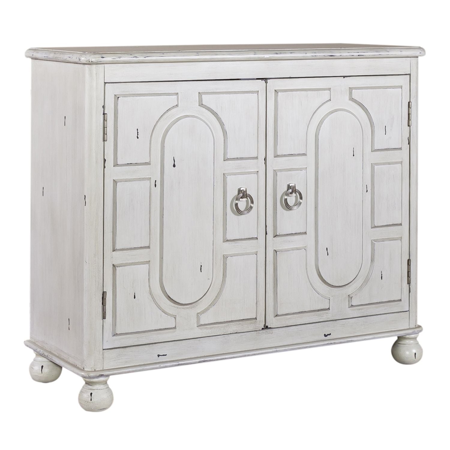 Rejuvenate your room with the Kirkwood accent cabinet. Crafted with Eucalyptus solids and mdf. Finished in an Antique white with black splatter and heavy rub thru marks to give that weathered feel that is popular today. Features two doors with decorative overlay, round pilasters and bun feet with one adjustable interior shelf. A great piece for any room from hallways, living rooms, bedroom or even a kitchen. The design will work with all decor from farmhouse to vintage.