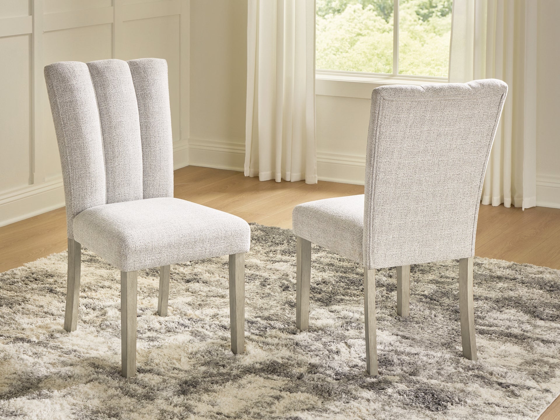 This dining chair reflects your highly contemporary point of view. Its easy-to-clean Next-Gen Nuvella™ upholstery in soft gray is a feast for the senses. Channel stitching details give the chair a tailored feel. What a delicious choice for an elegantly elevated dining room.