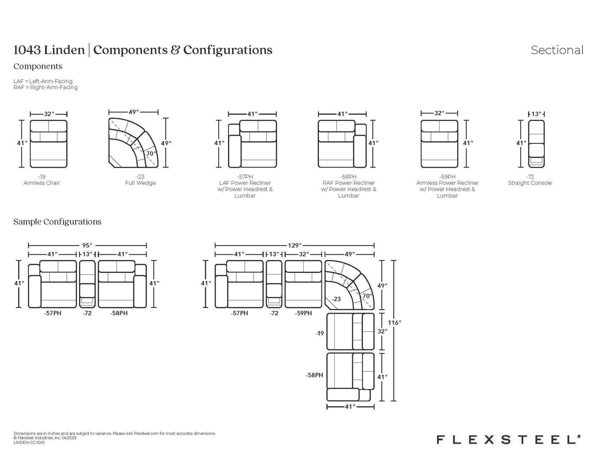 Enjoy the ultimate in ergonomics with the Linden power reclining sectional with power headrests and lumbar. Plush, divided back cushions support the back while the padded track arms showcase an eye-catching cross-stitch detail. Independently adjust the recline, headrest and lumbar for a customized sit. Further your comfort with Zero Gravity recline technology that reduces the forces of gravity on your body, improving circulation and relieving pressure from your spine. And with Flexsteel’s Blue Steel Spring™ at the heart of each seat, the Linden sectional is designed to last.