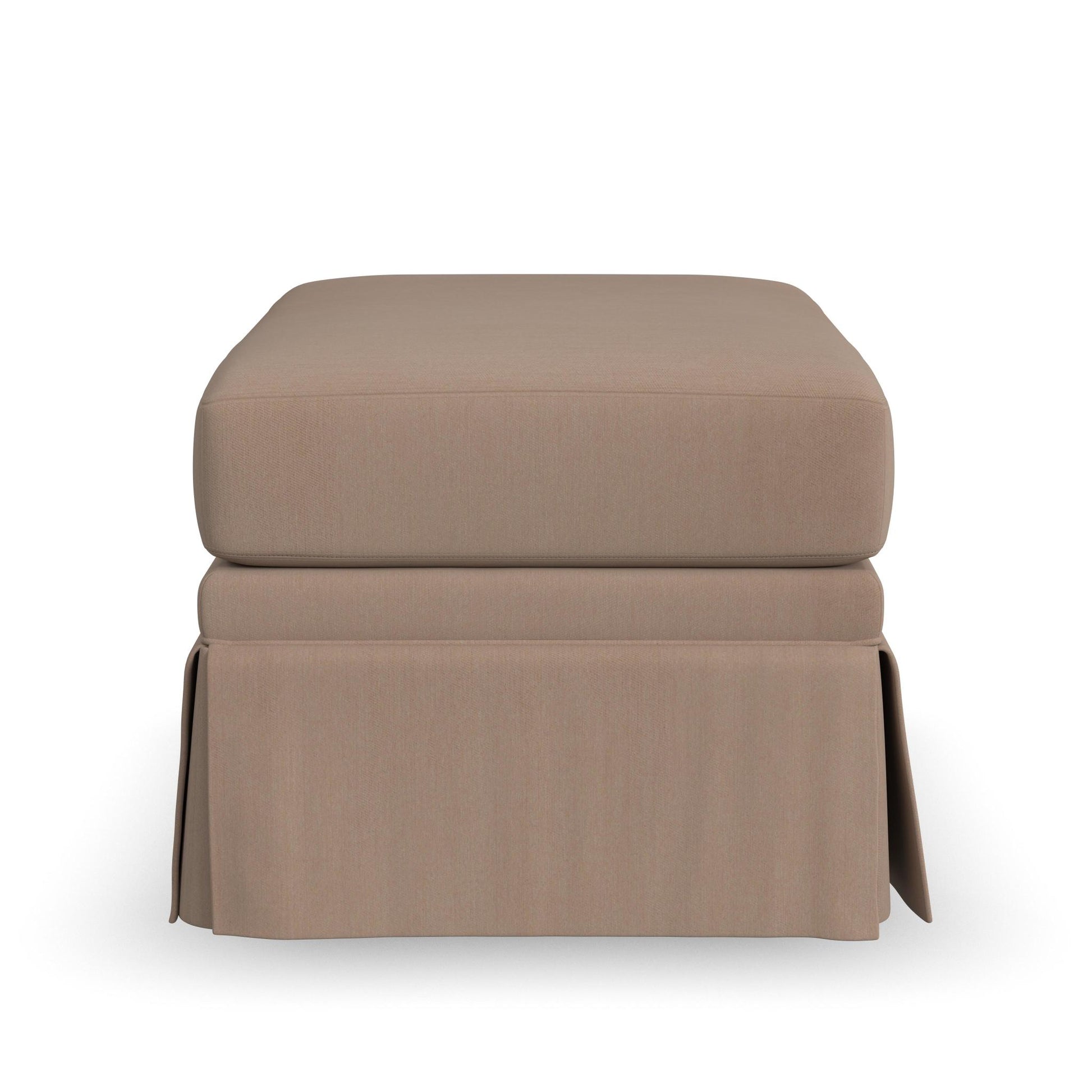The Lottie ottoman, the missing piece to your elegant living room. Perched atop a durable 5-layer wood frame, this ottoman brings utility and style. With the added flair of a skirt trim, this ottoman is a showstopper. Match the rest of your collection with your choice of fabric, including performance and sustainability options. Adorned with a small, welt detail, this ottoman is sure to complete your elevated living room. Bring a bit more elegance to your everyday life, with the Lottie ottoman.