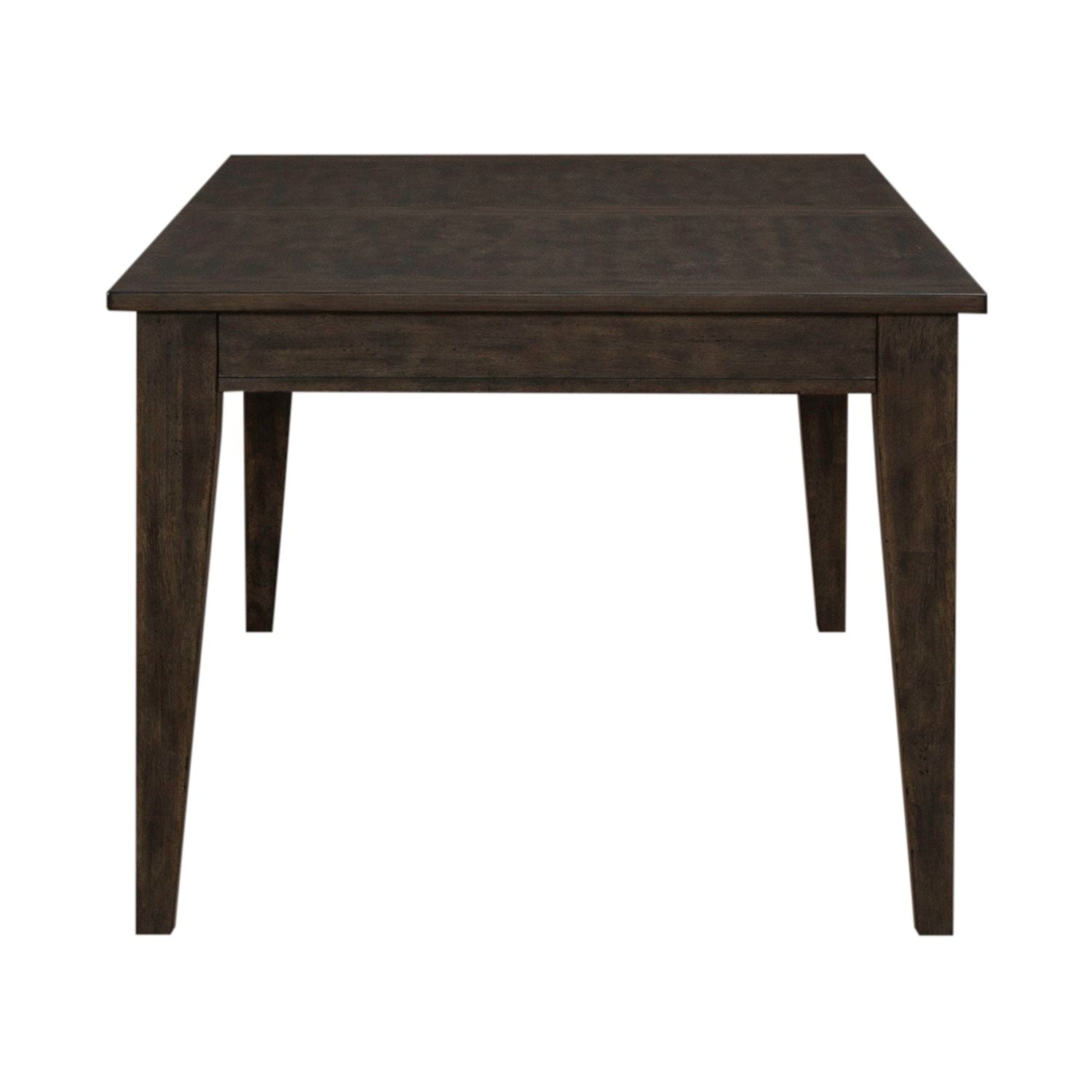 The Midland Falls rectangular leg table exudes a warmth that invites people to gather around it and share stories, laughter, and meals. Crafted of Rubberwood solids and Split Heart White Oak veneers, this table features a Rustic Brown finish. It includes a removable eighteen inch leaf on a wood guide and metal gear leaf track system. The ends of the tabletop showcase a breadboard veneer pattern that draws the eye to the over scaled square tapered legs. The Midland Falls rectangular leg table will become the central hub for family gatherings, creating memories to be cherished for a lifetime.