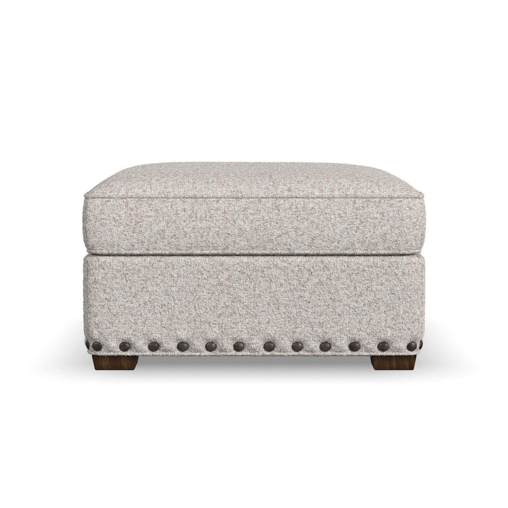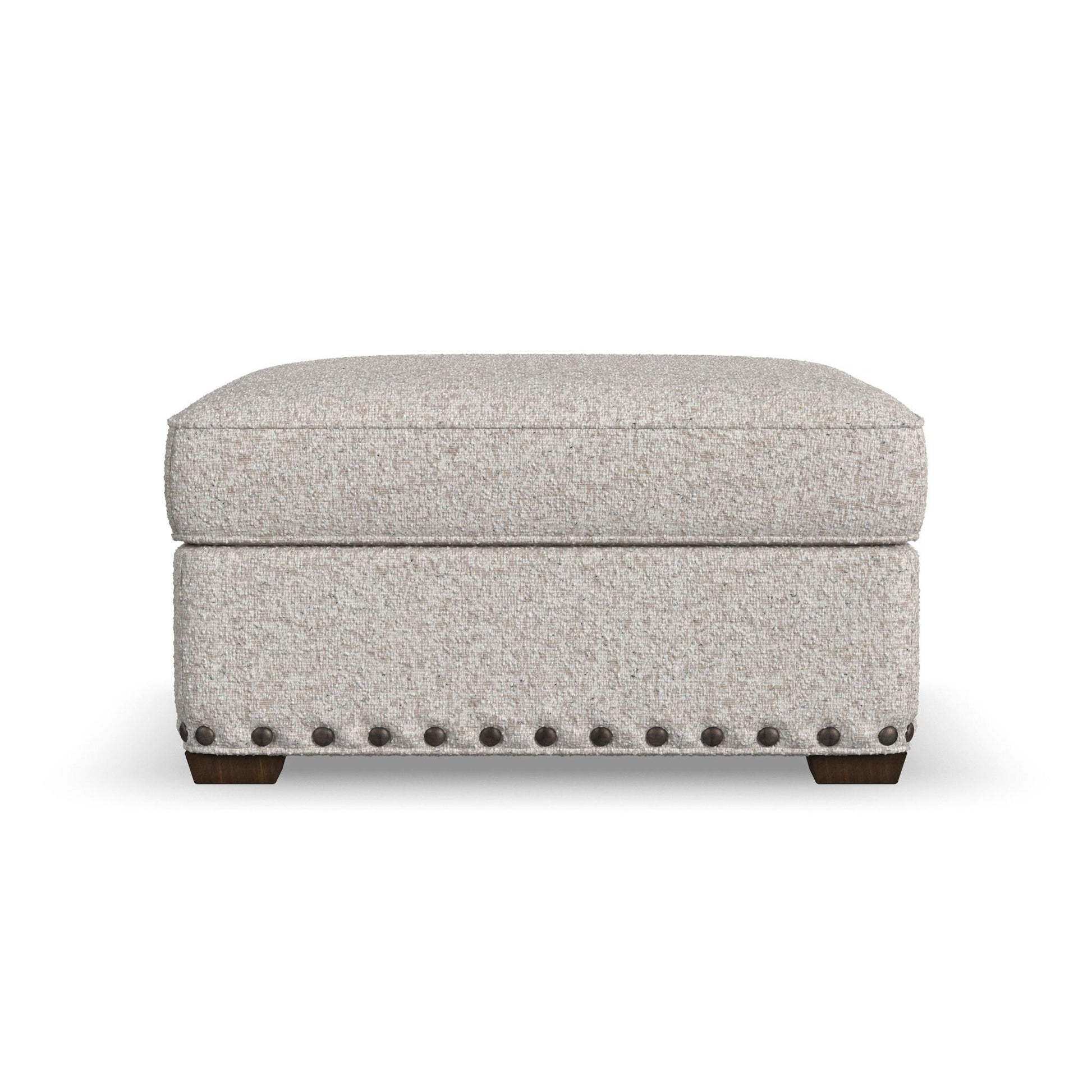 A Legacy of Luxury Complete your legacy of luxury with the Milo ottoman. This upscale ottoman features French seams, a thoughtful welt detail, and a hand-applied nailhead trim perched on elegant square-tapered legs. The high-density foam core cushion is designed to stand up to everyday wear for enduring comfort and quality. For distinctive style designed to be everlasting, look no further than Milo. Dimensions 18H x 33W x 31L