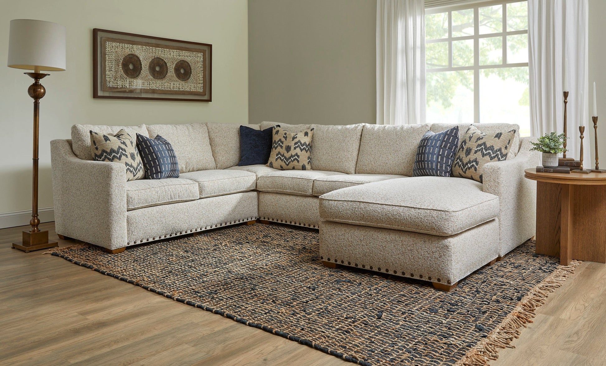 Timeless sophistication meets modern versatility with the Milo sectional, a spacious and upscale design that is customizable to fit any space and is built to last for generations. Featuring softly sloped arms with French seams, thoughtful welt detail on the seat cushions, hand-applied nailhead trim, and included accent pillows; customize this sectional with hundreds of fabric choices. For distinctive style designed to be everlasting, look no further than Milo.