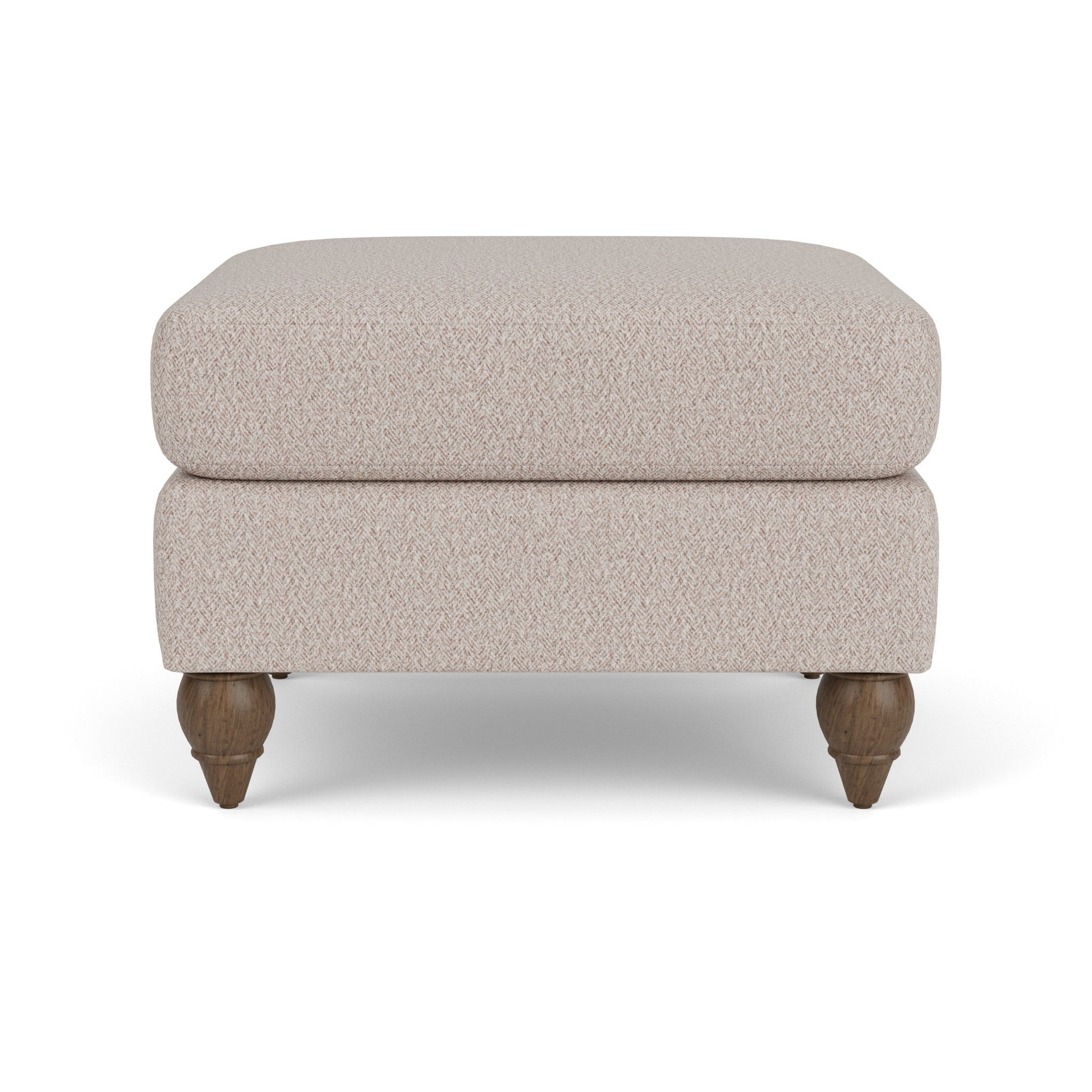 Elevate your tired feet and legs in personalized style and comfort with the Moxy ottoman. Round turned legs come in your choice of three distinct wood finishes—Florentine, Valencia, or Urban Renewal—to suit your unique style. Select from hundreds of different fabric choices, including high-performance and sustainable textiles, to add color and texture to your space. And for those times when you need additional guest seating, this ottoman ensures lasting comfort with our luxury foam cushion.