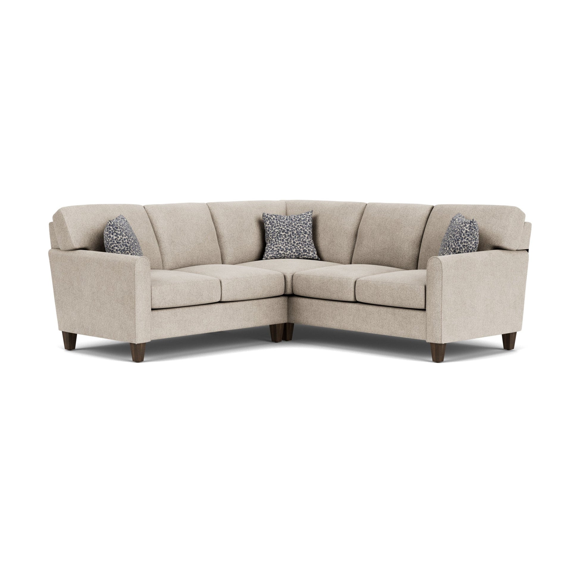 Spirit Meets Style Cozy up with the family or claim it all for yourself with the Moxy sectional that lets you personalize details for the perfect look and feel. Rounded mailbox arms and square tapered legs provide a clean look. This sectional is built with superior frame construction and our patented Blue Steel Spring, ensuring your Moxy can be enjoyed for years to come. Create a custom configuration just for your home with five components to choose from. Then, complete the look and showcase your lifestyle with hundreds of different fabric choices, including high-performance and sustainable textiles. Choose from five sectional components to build a custom configuration Rounded mailbox arms and square tapered legs provide a contemporary look Semi-attached back cushions remain fixed in place, ensuring a clean look and comfortable feel Removable seat cushions in a classic square style Built to last with the Flexsteel patented C-Flex Blue Steel Spring that provides an elevated level of support Available in hundreds of fabric choices, including those with robust performance and sustainability characteristics Comes with accent pillows to enhance comfort and style Model Number: 5039-SECT Dimensions
