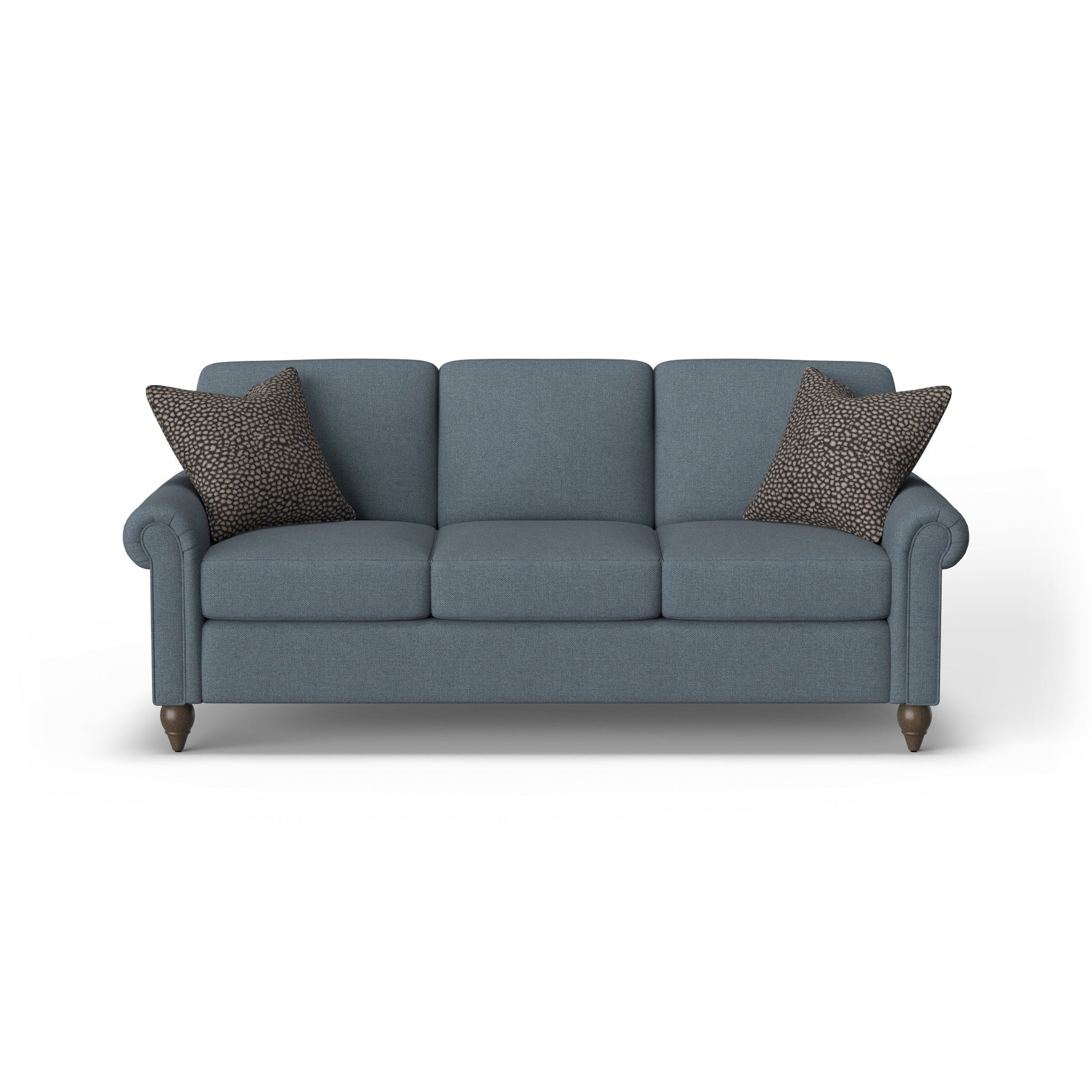 Spirit Meets Style The Moxy sofa ensures you never have to settle for anything other than the perfect design, no matter your style. Formal panel roll arms sit on round turned legs that are available in three distinct wood finishes—Florentine, Valencia, or Urban Renewal—to complement any décor. The removable square, inside seat cushion style offers you the flexibility to rotate for added longevity. Sink into the ideal level of support with your choice of our luxury or plush cushions. Complete the look and showcase your lifestyle with hundreds of different fabric choices, including high-performance and sustainable textiles. Superior frame construction and our patented C-Flex Blue Steel Spring™ ensures your Moxy can be enjoyed for years to come. Dimensions 37H x 82W x 39L