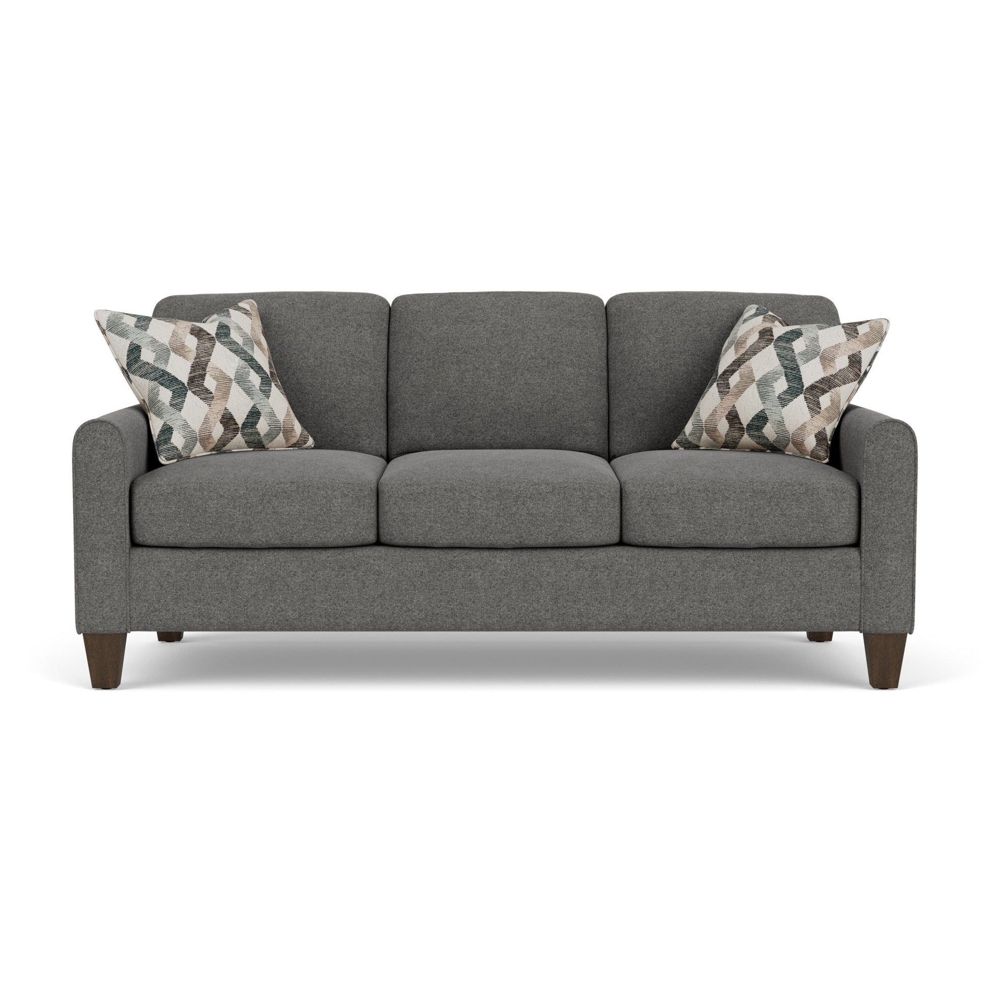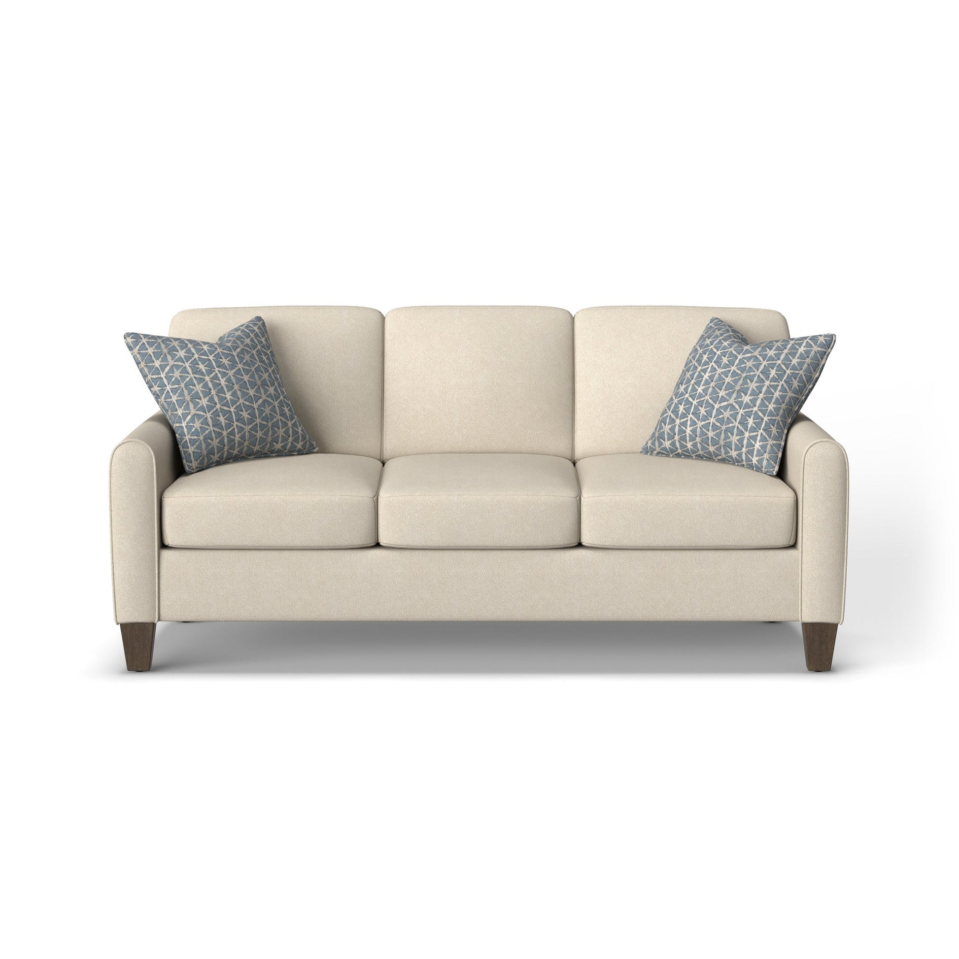 Spirit Meets Style Cozy up with a loved one or claim it all for yourself with the Moxy sofa that lets you personalize details for the perfect look and feel. Rounded mailbox arms provide a clean look. Square tapered legs come in your choice of three distinct wood finishes—Florentine, Valencia, or Urban Renewal—to complement any décor. The removable square, inside seat cushion style offers you the flexibility to rotate for added longevity. Sink into the ideal level of support with your choice of our luxury or plush cushions. Complete the look and showcase your lifestyle with hundreds of different fabric choices, including high-performance and sustainable textiles. Superior frame construction and our patented C-Flex Blue Steel Spring™ ensures your Moxy can be enjoyed for years to come. Dimensions 37H x 82W x 39L