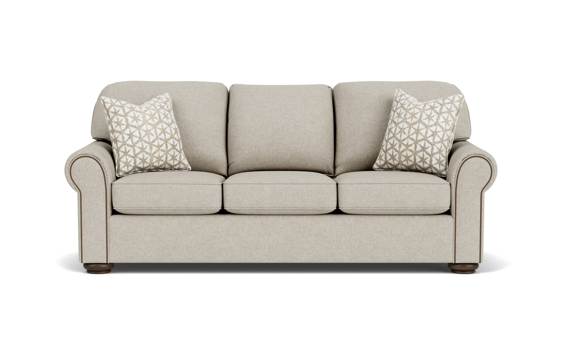 Smooth edges, oversized rolled arms, and exposed round bun feet give Preston classic appeal as a living-area staple. This sofa features welt cording trim on the back and seat cushions with nailhead trim for an elegant touch. Backed by lifetime guarantees, the style and comfort of Preston will be enjoyed for years to come.