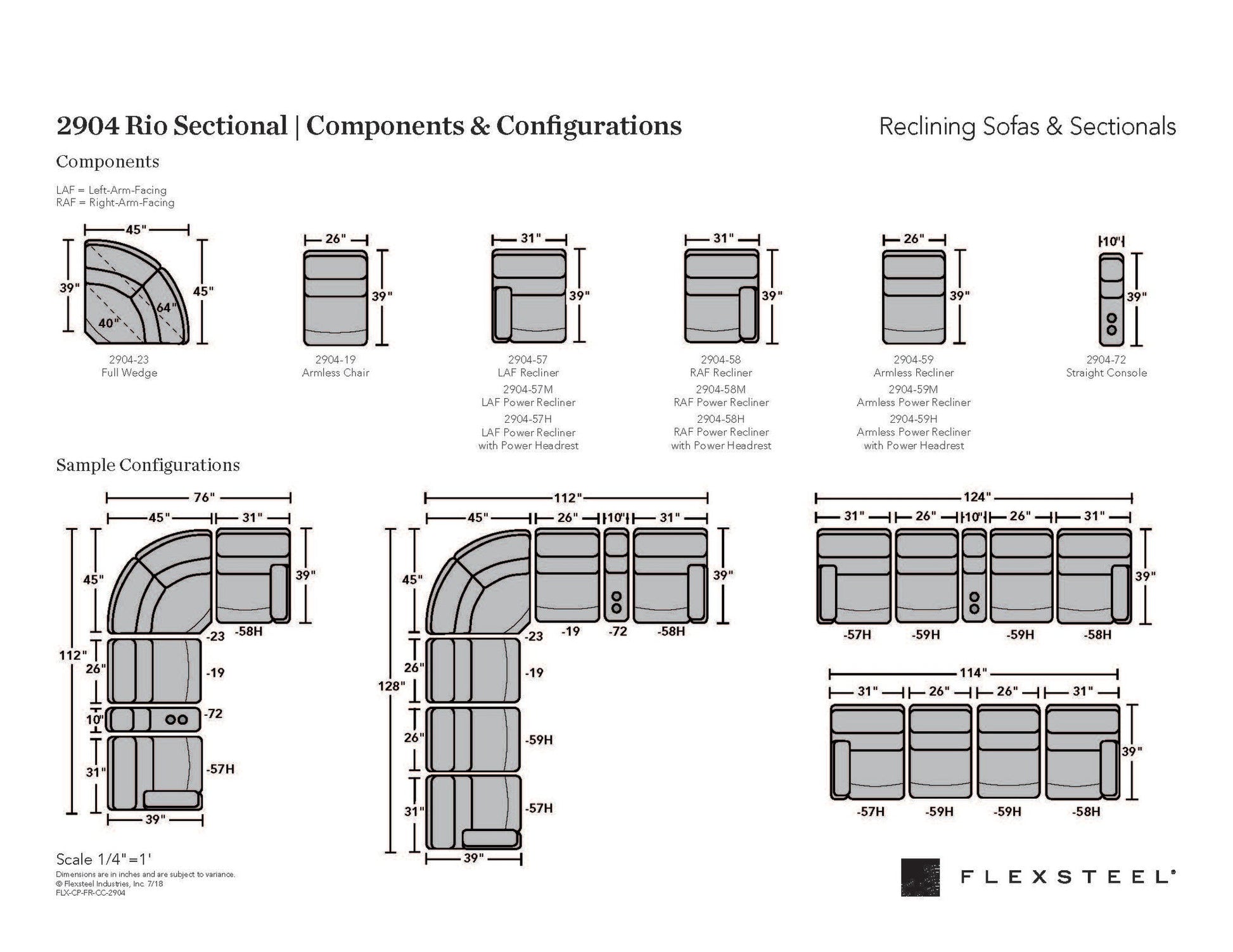 Get together for a fun, relaxing night with the Rio Power Reclining Sectional with Power Headrests. Using a convenient power control with built-in USB charging port in both arms, you can easily adjust the headrests and recline for peak comfort while streaming your favorite shows. With a handy storage console, keep drinks close by and never worry about losing the remote. Divided back cushions take pressure off your neck, back and lower lumbar, helping you unwind and enjoy the evening. Add to the mix inset padded armrests that support the forearms, and you have the ideal ergonomic setup for a cozy night in. Our patented Flexsteel DualFlex Spring System™ ensures a pleasing mix of flexibility and firmness as you sit. And with over 250 fabrics, including high-performance options, you can create a look that’s all your own and never worry about durability.