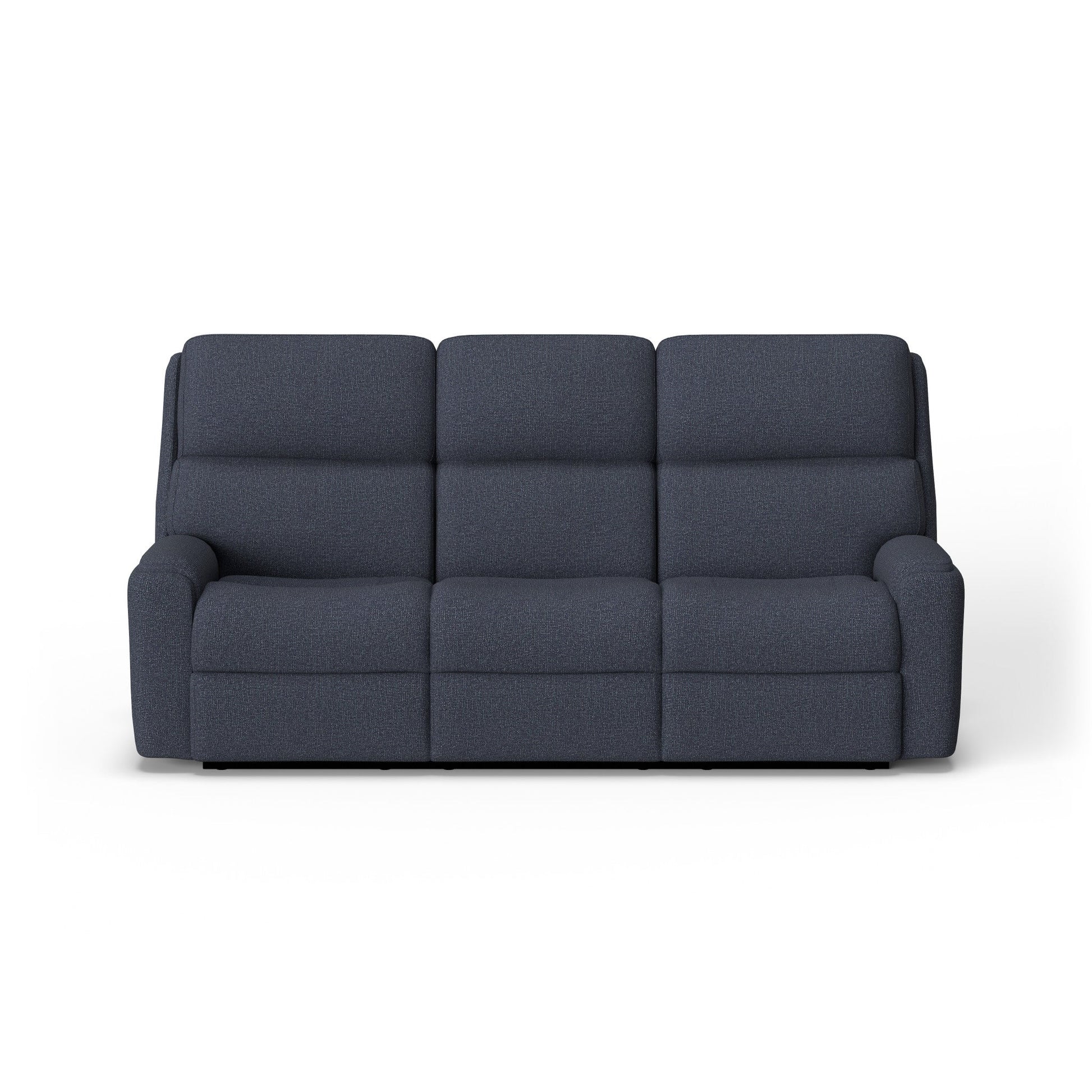 Gather the troops for a fun night in or stretch out solo with the spacious, supportive Rio Power Reclining Sofa. When you’re ready to recline, one touch of the power control with USB charging port on either arm gets everyone into the comfort zone. Plush divided back cushions bolster your neck, back and lower lumbar, while inset padded arms have a refined look and take pressure off your forearms. Top it off with our patented Flexsteel DualFlex Spring System™ that ensures a pleasing mix of flexibility and firmness as you sit, and you’ve got a power reclining sofa that’s built to last. Choose from over 250 options including easy-to-clean high-performance fabrics to upholster a sofa that will suit your style and look great for years to come.