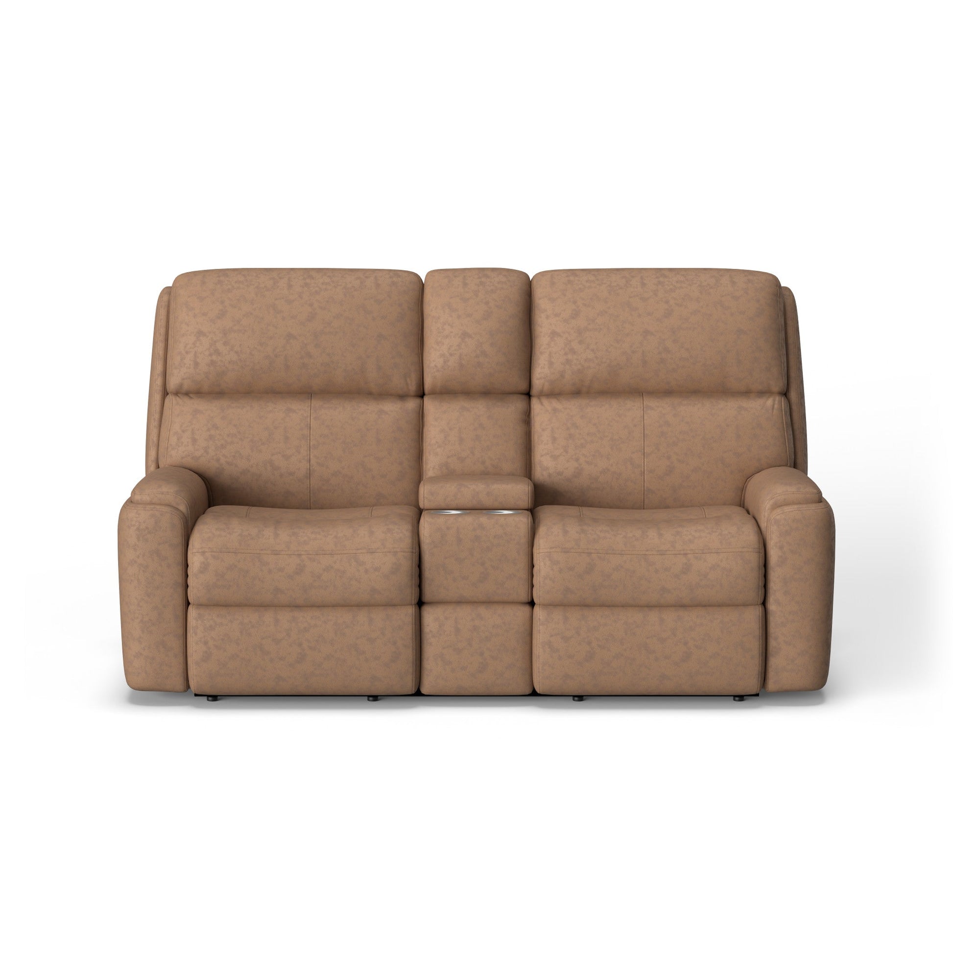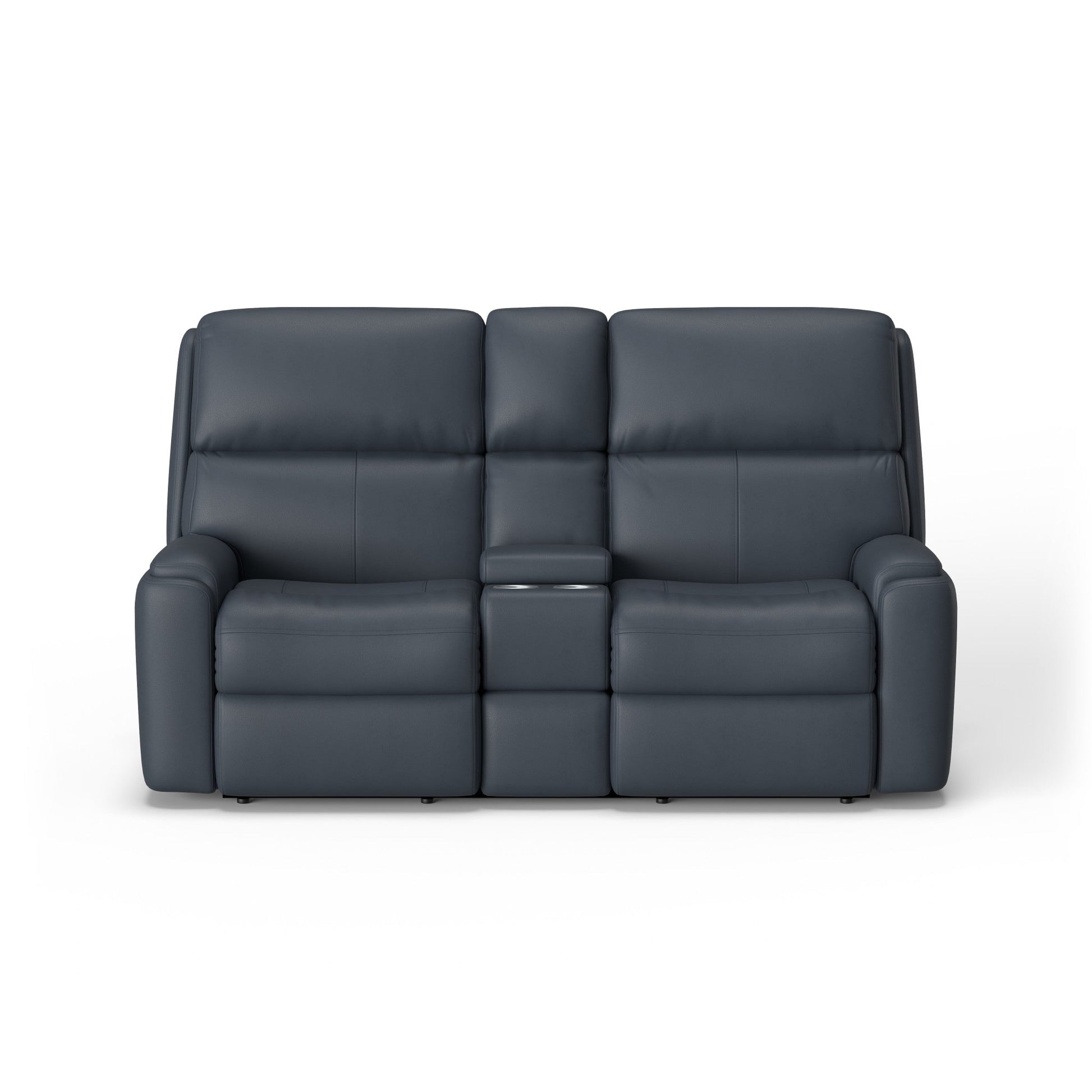 Stay comfy with everything you need for streaming, gaming or relaxing close at hand with the Arlo Power Reclining Loveseat with Console. Using the power controls in either of the arms, you and the person you’re sitting with can easily kick up your feet and recline. USB charging ports in the controls keep devices powered up and ready when you need them. A center storage console features cup holders and offers plenty of space to organize remotes, magazines and more. Comfort-enhancing design details include pull-tufted, triple-divide back cushions for a distinctive look and optimal back support. Contoured seats take pressure off your legs as you sit, while our patented DualFlex Spring System™ provides firmness and flexibility. Rounded pad-over track arms support your forearms—perfect for long hours of gaming or movie watching. Choose from over 50 leather and leather match options to create a look that’s all your own.