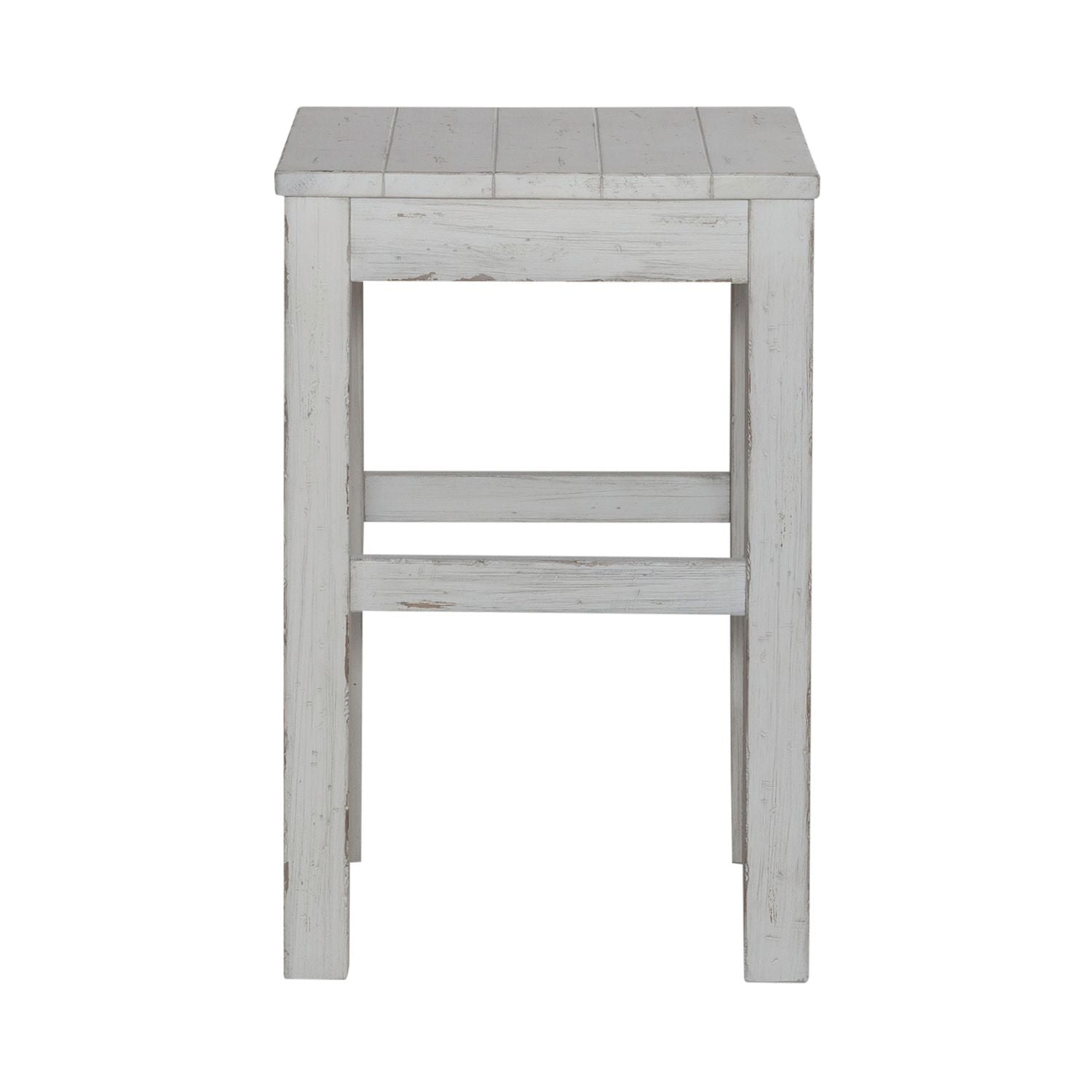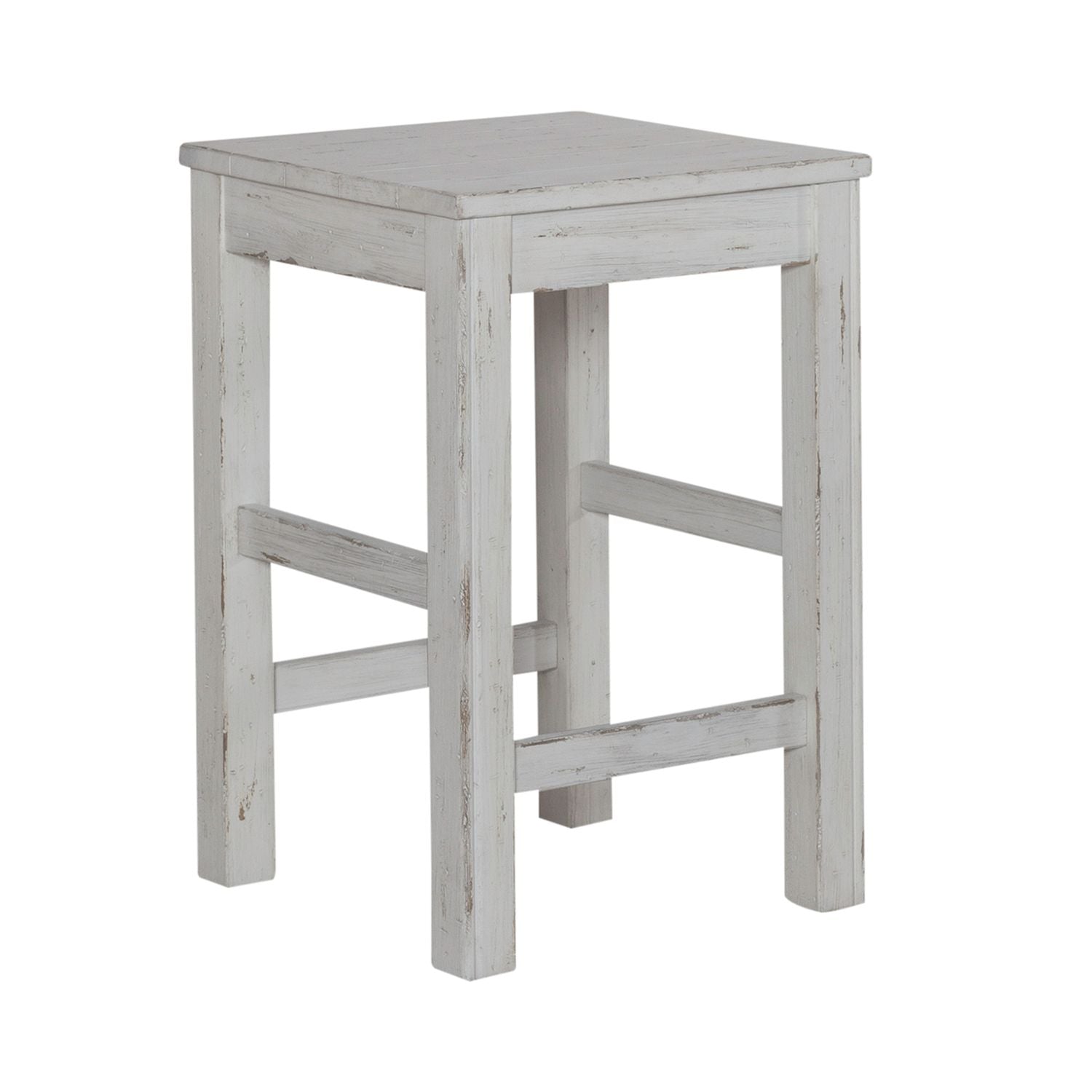 Create a calm and peaceful oasis with the River Place console stool. Crafted with Pine solids, this piece features a heavily distressed Riverstone White finish. The seat of the stool is planked and combined with the square block legs which feature nylon chair glides to protect your flooring, creates an inviting and airy atmosphere in your home. The River Place console stool strikes the perfect balance of life on the coast and a comfy home tucked away in the hills.