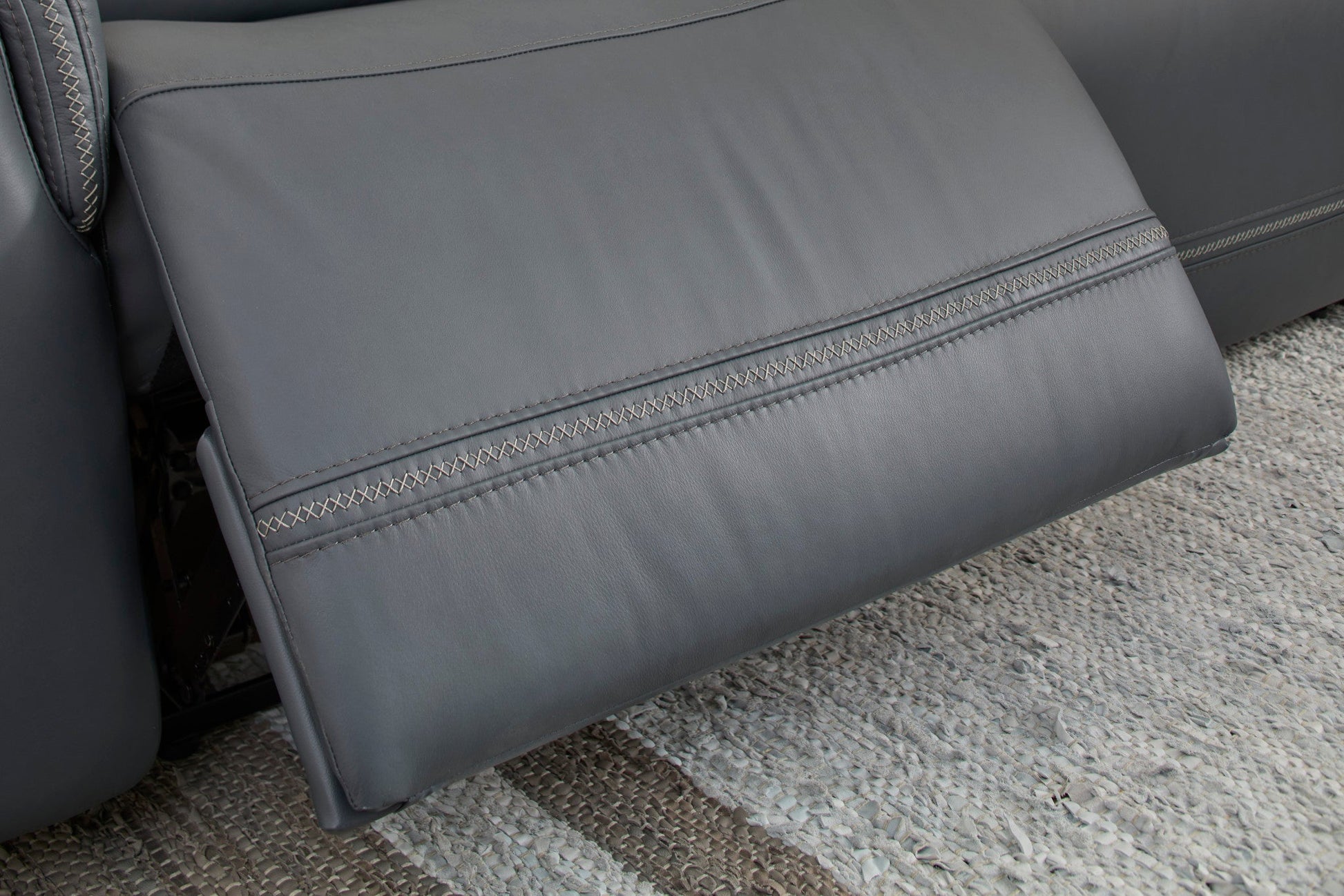 Wyatt Gunmetal Leather Power Reclining Sectional with Power Headrest & Lumbar