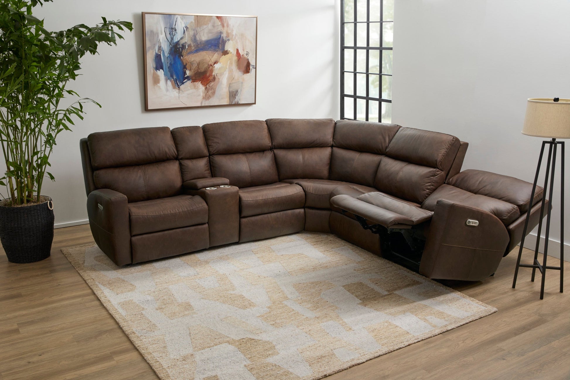 Score Leather Power Reclining Sectional with Power Headrest & Lumbar