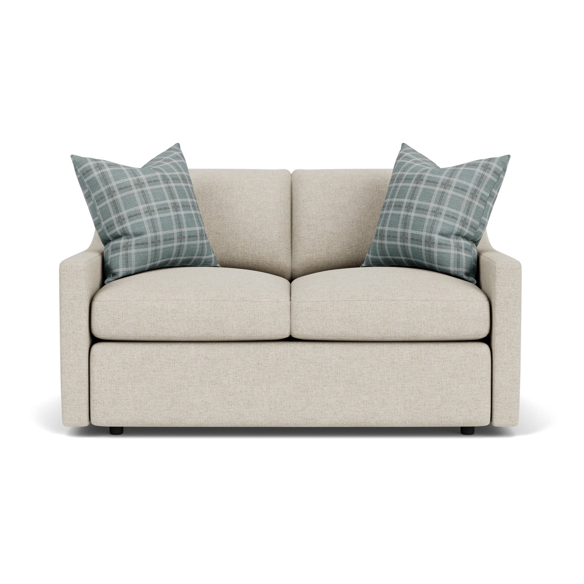 Cradle Yourself In Cloud-Like Comfort You’ll experience the comfort of floating on a cloud as you make room for two on the Sky loveseat. Featuring recessed legs, a low, deep profile and gently sloped arms, the Sky loveseat offers a modern look that’s like a breath of fresh air. Surround yourself in lofty, luxurious comfort with removable, reversible seat and back cushions filled with a premium hypoallergenic polyester fill that feels just like down. With hundreds of fabric choices, you can design the Sky loveseat to perfectly suit your home. A contemporary silhouette with soft, sloped arms and recessed legs Removable back and seat cushions allow you to flip and rotate them for even, lasting wear Includes two accent pillows to enhance your comfort and style Cushions are filled with CloudLux, a hypoallergenic down alternative that provides luxury loft and comfort Built to last with the Flexsteel patented DualFlex Blue Steel Spring that provides an elevated level of support Sustainably sourced wood frame delivers exceptional durability Available in hundreds of fabric choices, including those with robust performance and sustainability characteristics Model Number: 5510-20 Dimensions 34H x 58W x 39L