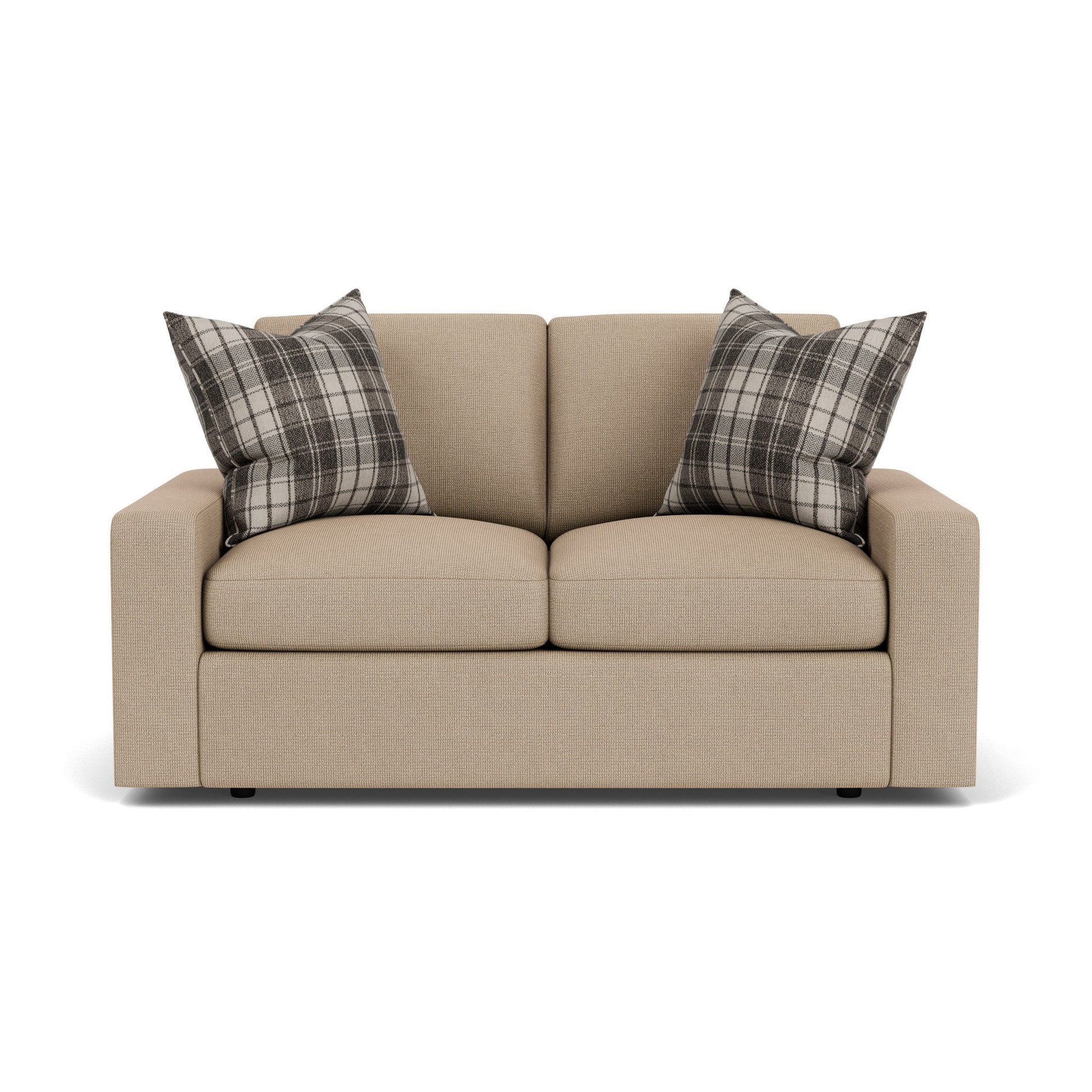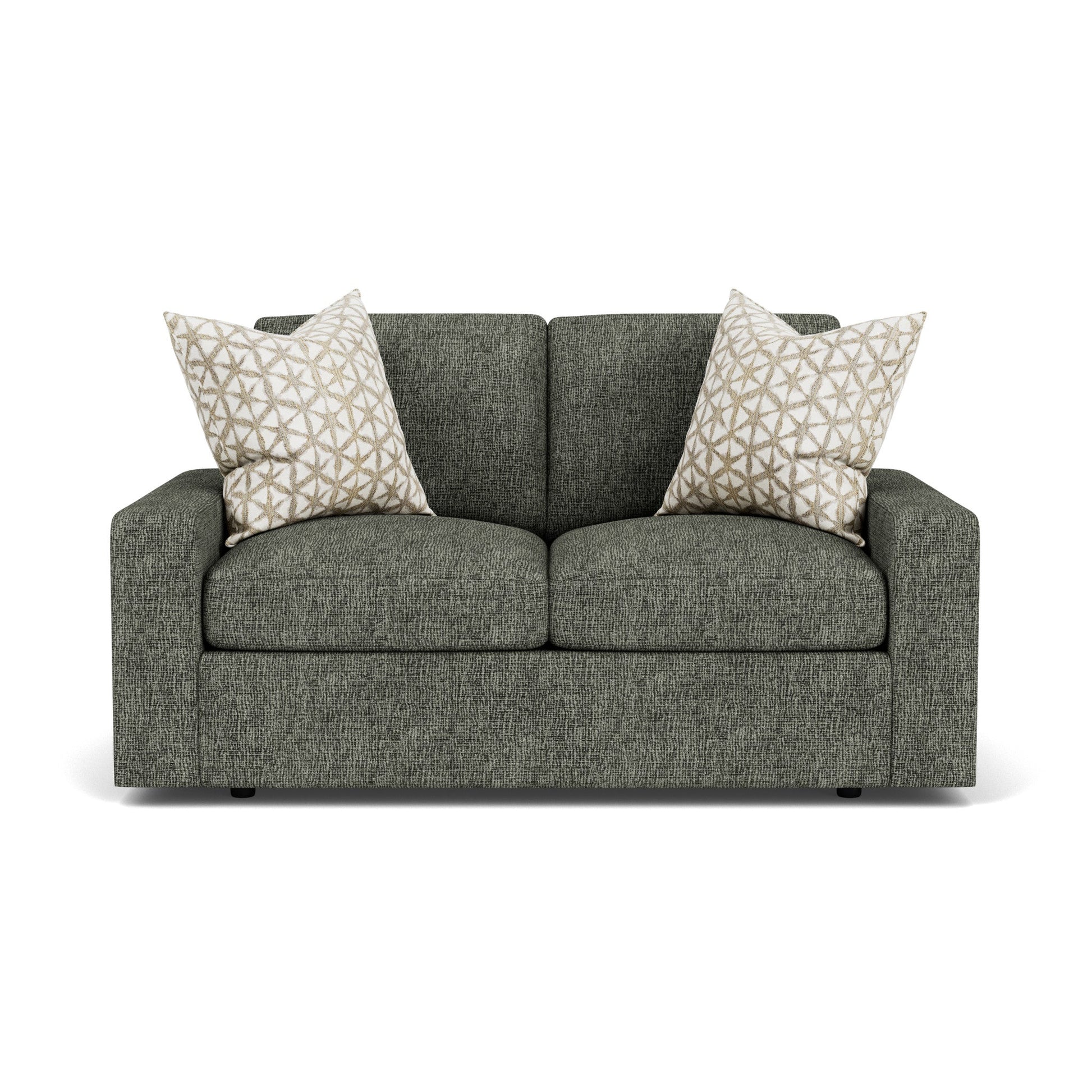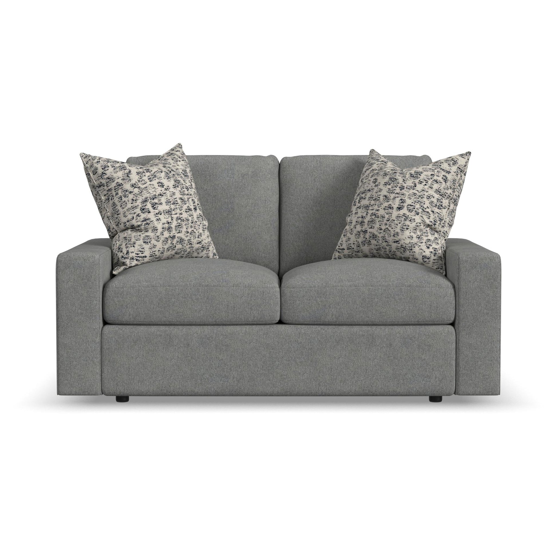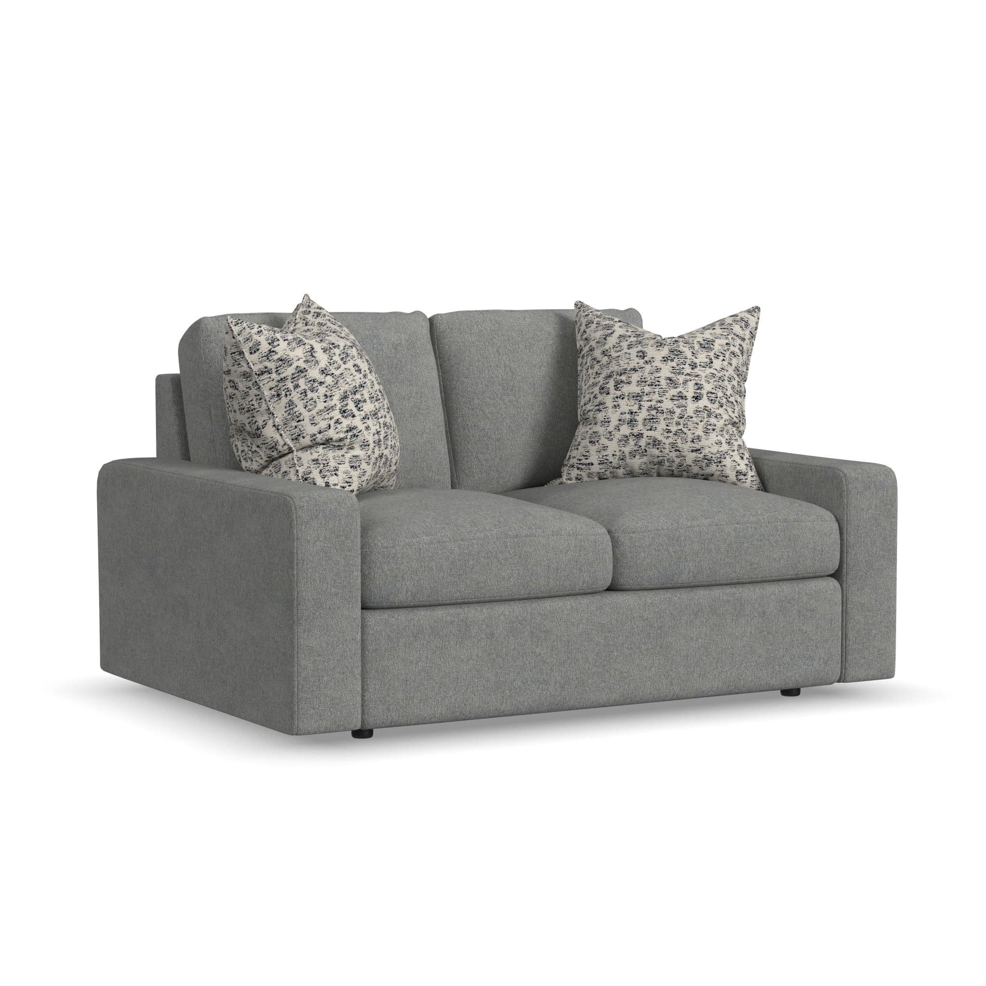 Cradle Yourself In Cloud-Like Comfort You’ll experience the comfort of floating on a cloud as you make room for two on the Sky loveseat. Featuring recessed legs, a low, deep profile and wide, contemporary track arms, the Sky loveseat offers a modern look that’s like a breath of fresh air. Surround yourself in lofty, luxurious comfort with removable, reversible seat and back cushions filled with a premium hypoallergenic polyester fill that feels just like down. With hundreds of fabric choices, you can design the Sky loveseat to perfectly suit your home. A contemporary silhouette with clean lines, low track arms and recessed legs Removable back and seat cushions allow you to flip and rotate them for even, lasting wear Includes two accent pillows to enhance your comfort and style Cushions are filled with CloudLux, a hypoallergenic down alternative that provides luxury loft and comfort Built to last with the Flexsteel patented DualFlex Blue Steel Spring that provides an elevated level of support Sustainably sourced wood frame delivers exceptional durability Available in hundreds of fabric choices, including those with robust performance and sustainability characteristics Model Number: 5511-20 Dimensions 34H x 64W x 39L