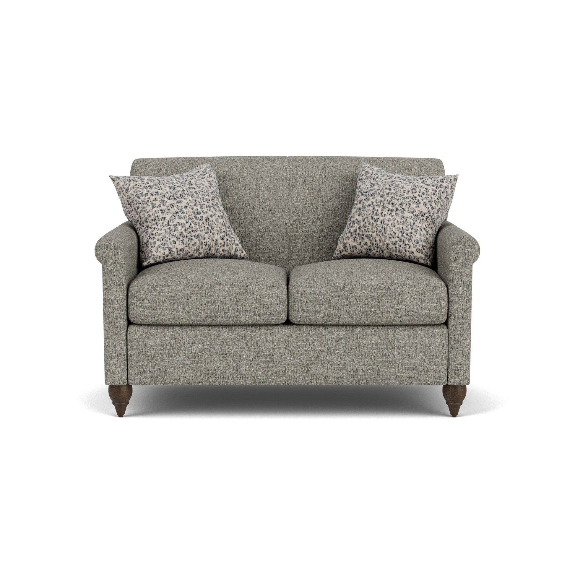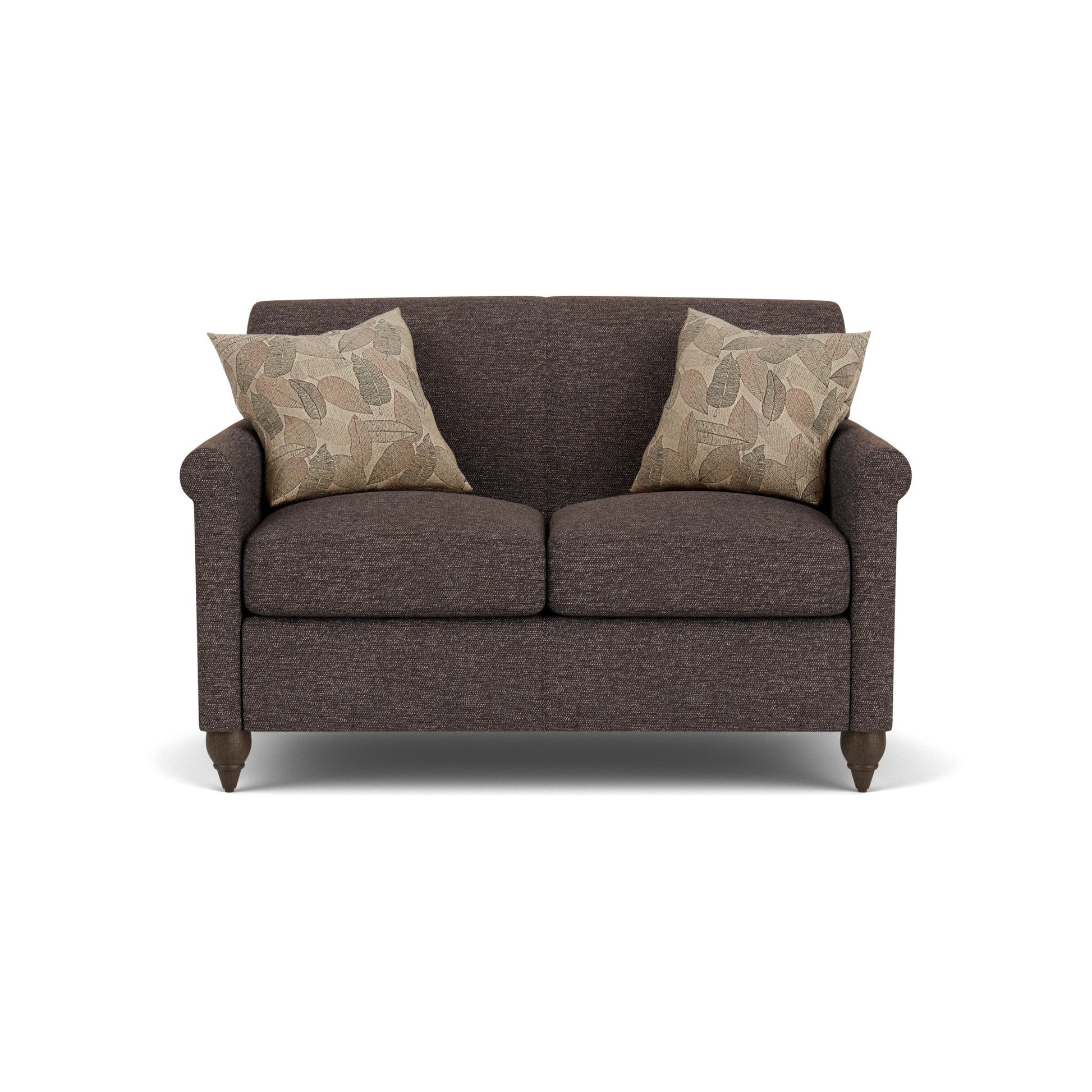 Whimsical elegance The perfect elegant piece to accentuate your home, the picturesque petite roll arms of the Stella loveseat invite you in. Take a seat atop removable and reversible cushions that are supported by our patented Blue Steel Spring system – backed by our lifetime guarantee. Handcrafted with a durable frame and upholstered with careful detail, Stella is designed to last. The tight back and turned wood legs give this quaint loveseat a modern flair. And with two accent pillows in your choice of fabric, elevate your home with the chic style of Stella. Constructed with a durable multi-layer wood frame The patented Blue Steel Spring C-Flex system provides unmatched seat support and comfort Lightly padded petite roll arms provide an elegant touch Two reversible seat cushions allow you to flip and rotate them for even wear and come in your choice of Luxury or Plush style Elegant turned legs in your choice of finish Includes two accent pillows in your choice of fabric to match your personal style Upholstered in your choice of fabric, including those with performance and sustainability characteristics Handcrafted in North America Model Number: 5891-20 Dimensions 36H x 55W x 35L