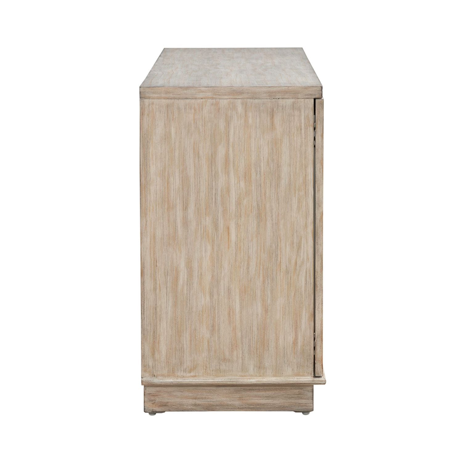 The Terrace 4 door accent cabinet is a captivating statement piece that effortlessly combines artistry with functionality. Crafted with excellence using MDF and Pine veneers, this piece features a Gravel finish. Inspired by the fluidity of a winding river, the unique textured pattern adorning the four doors lends an air of organic beauty to this cabinet. Framed with delicate bead molding, each door opens with ease thanks to the European soft-close hinges and a convenient push latch door system, ensuring smooth operation and durability. Behind each outer door, you'll find one fixed wood shelf, offering ample space for storage and display. Meanwhile, the set of center doors reveals a large fixed shelf, providing even more storage options to suit your needs. To maintain a tidy appearance, wire management provisions are included, keeping cables organized and out of sight. Adding to its charm, bead molding frames the bottom of the case, while a sturdy double block plinth base provides stability and support. Whether gracing your living room, hallway, or dining area, the Terrace 4 door accent cabinet is more than just a storage solution—it's a work of art that elevates the ambiance of any space with its distinctive design and practical functionality.