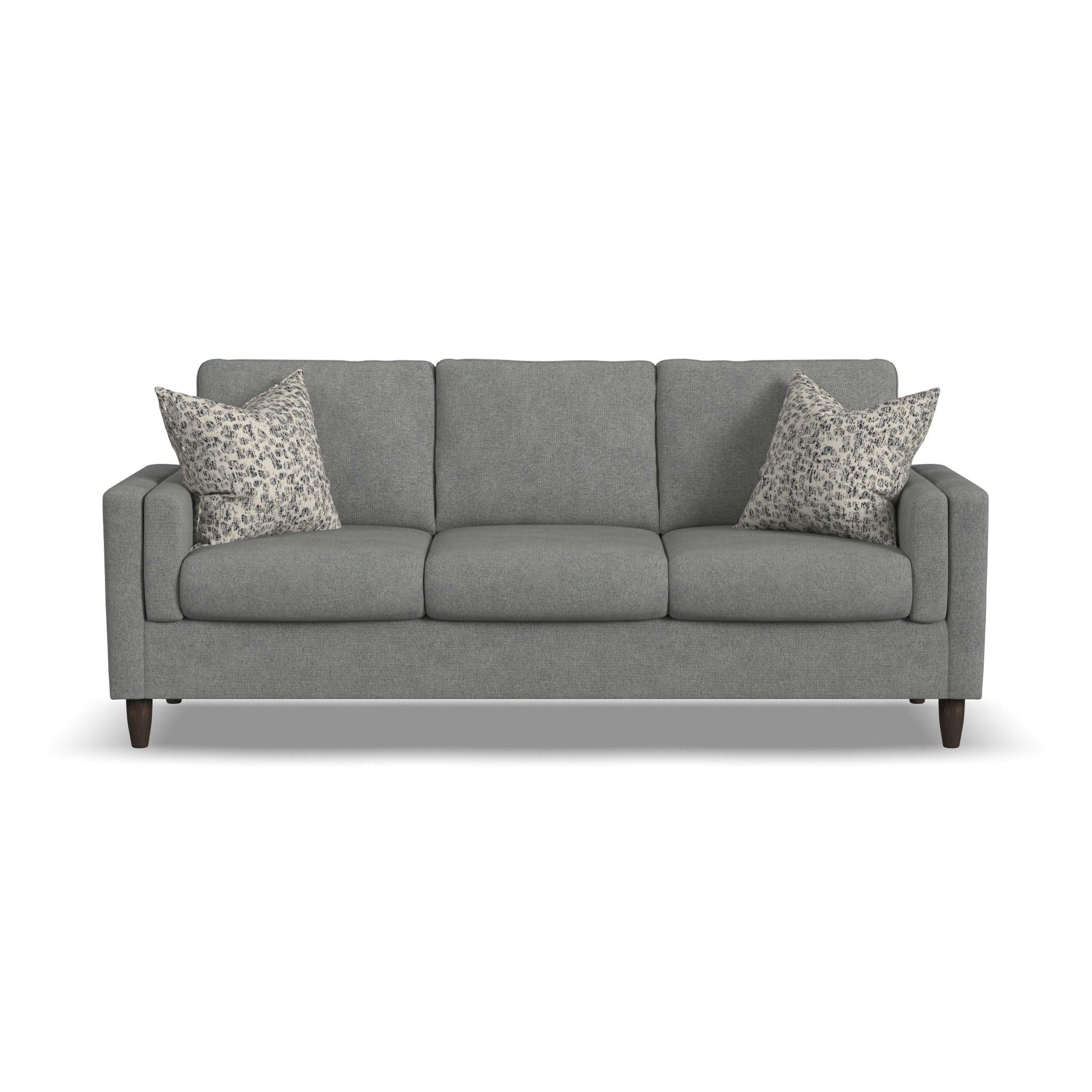 Retro Revival Experience timeless appeal with a modern twist with the Thomas sofa. Inspired by classic mid-century style and vintage Flexsteel designs, this sofa features layered arms, round tapered legs and bullnose cushions. Create the perfect style for your home with your choice of upholstery and pillow fabrics. Sized for ultimate versatility, the Thomas sofa brings casual sophistication and unmatched comfort to any living space. Dimensions 36H x 85W x 36L