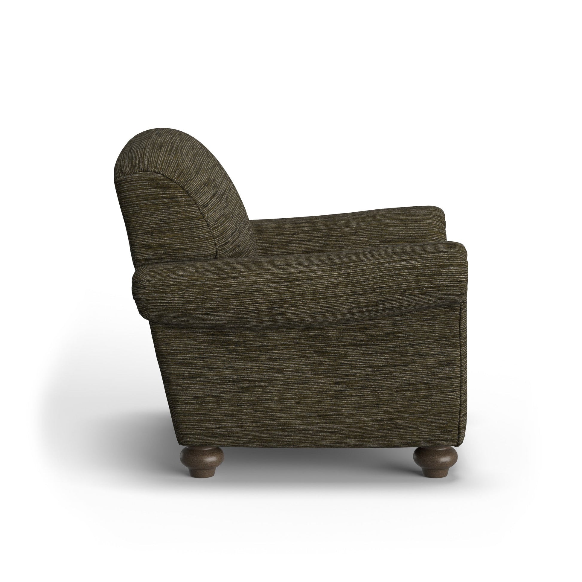 Clean lines trace graceful curves A tightly padded back, bun feet, and lyre-shaped rolled arms create an elegant scalloped profile for deep, cushioned seating. Enjoy the old-world refinement of Winston's traditional styling with all the benefits of brand-new upholstery. Careful tailoring of all fabrics reflects matching of all elements except welts. Model Number: 5997-10 Dimensions 38H x 41W x 38L
